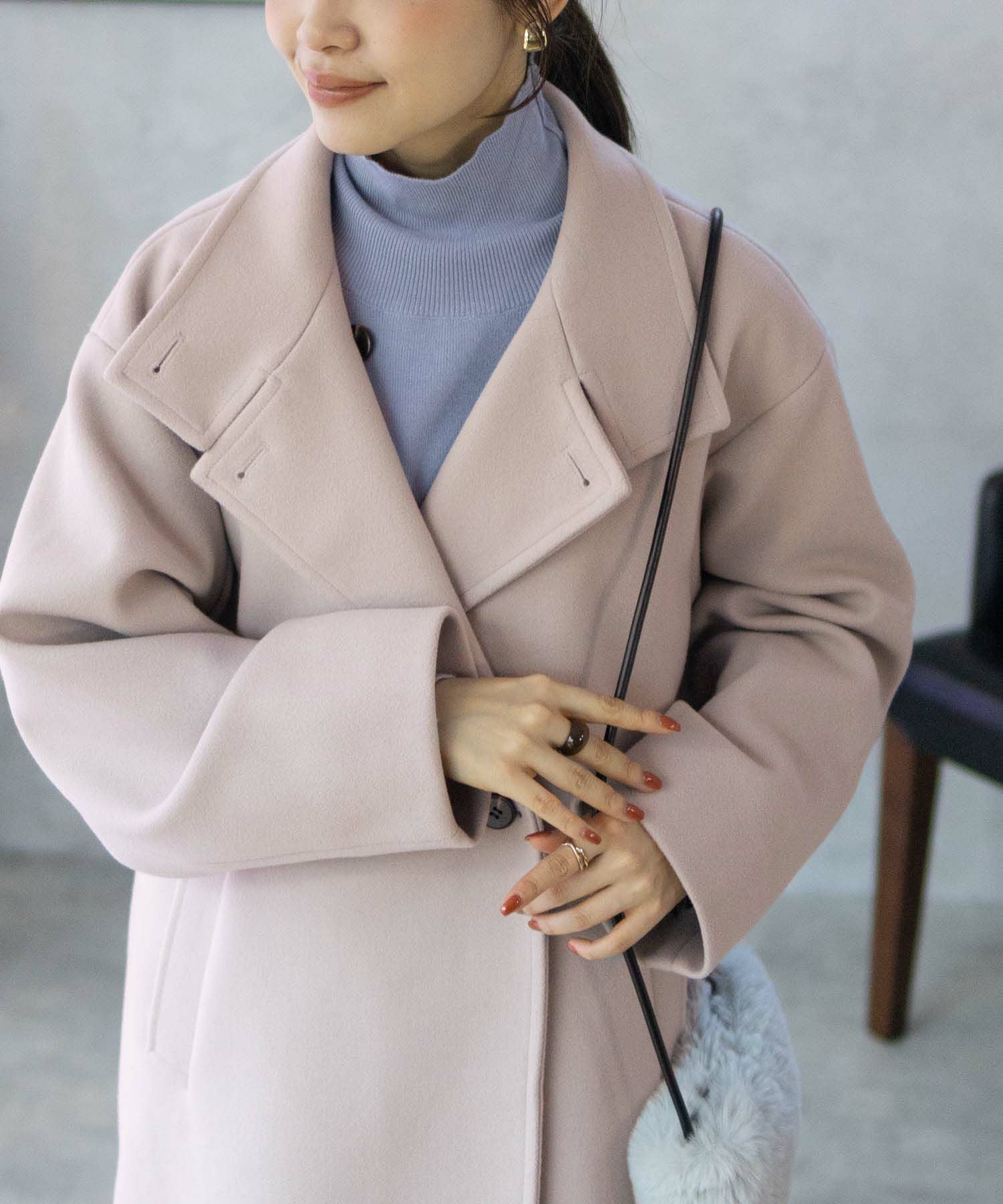 ハッシュアッシュ コート アウター ポケット ボタン ミディアム丈 膝下丈 スタンドカラー