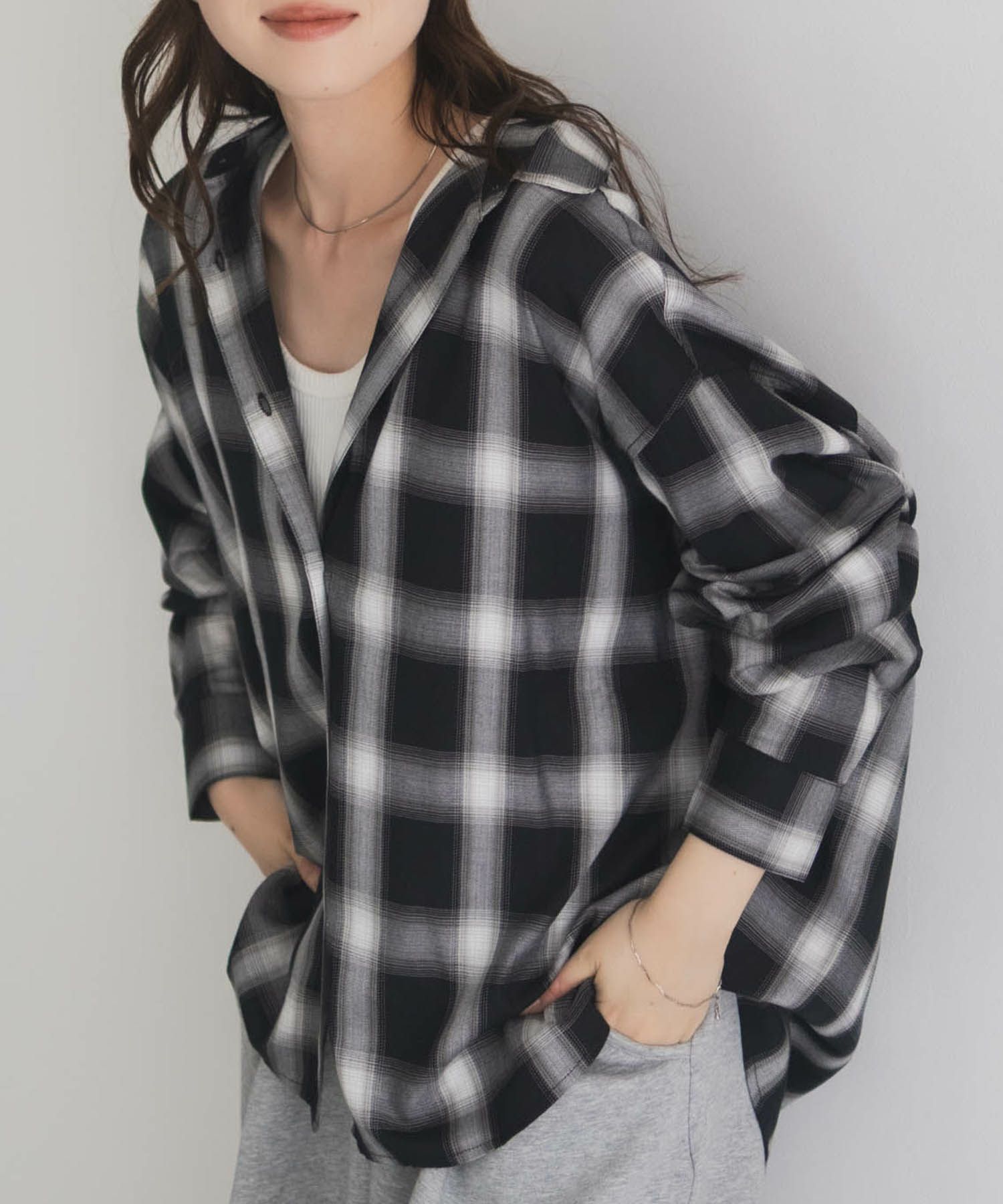 トレンド感のある、オンブレチェックやブロックチェックを入れた柄物と、なんにでも合わせやすい無地からお選びいただけます。