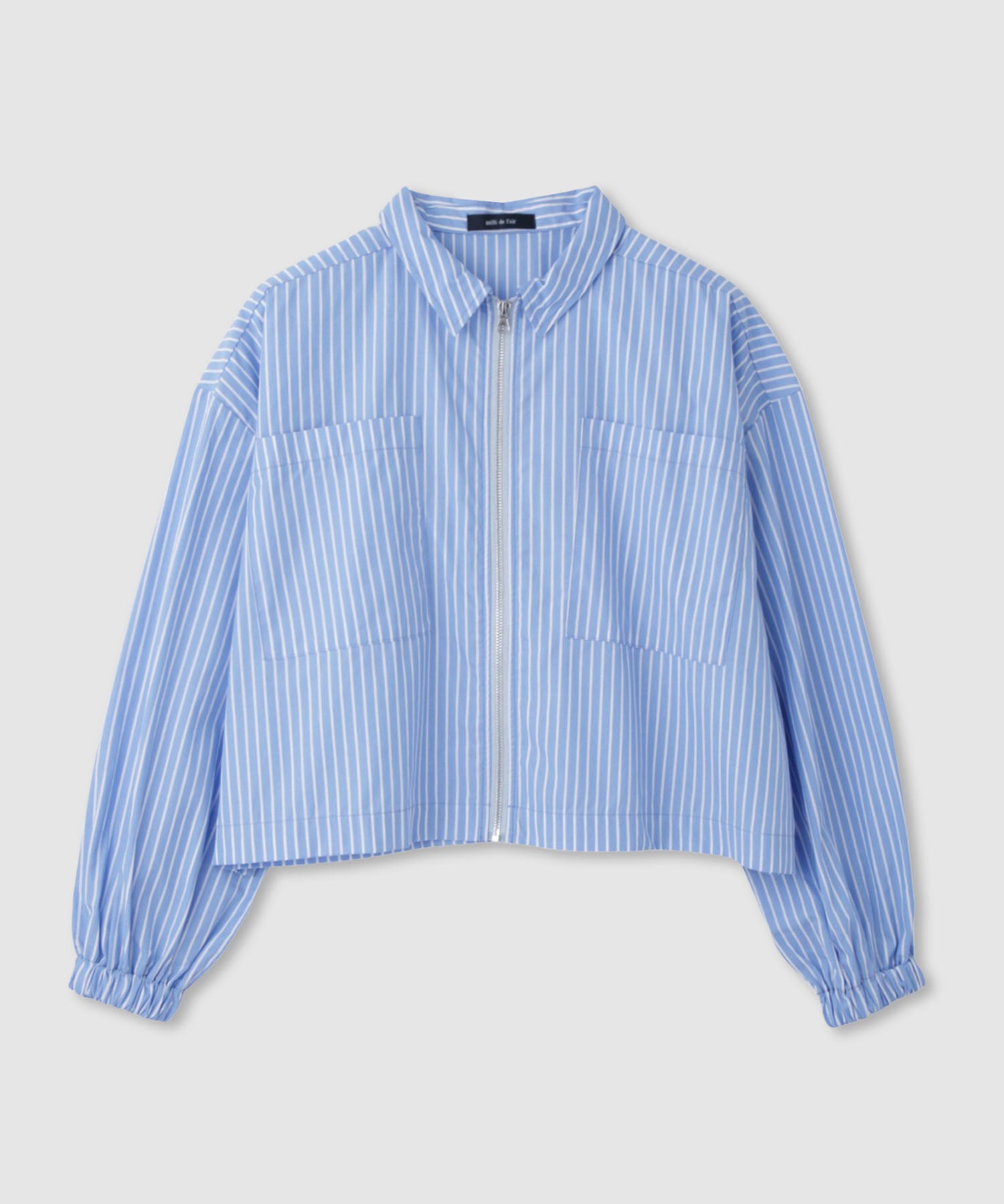 ミリデラール 長袖シャツ ブルゾン ジップアップ 襟付き ストライプ カジュアルシャツ ライトアウター 羽織り