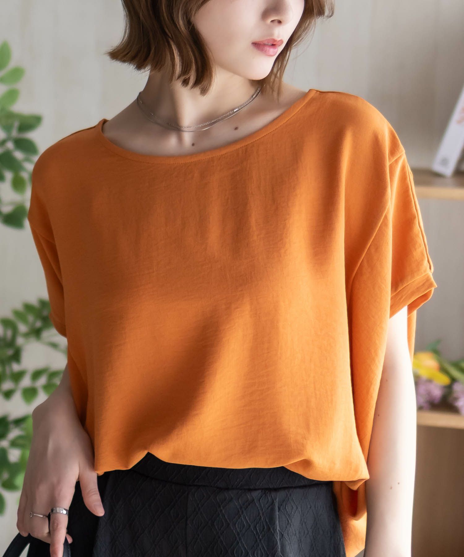 サラリ 半袖Tシャツ ブラウス 接触冷感 ひんやり 洗濯機洗い可能 シワになりにくい ドルマンシルエット 無地 シンプル 黒 カットソー