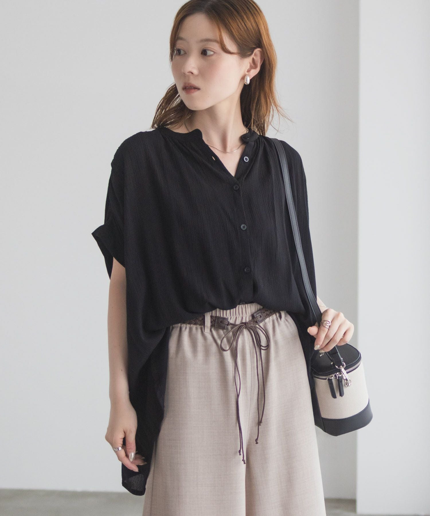 ロングスカートやワイドパンツと合わせるだけで、品の良いリラックススタイルが完成。