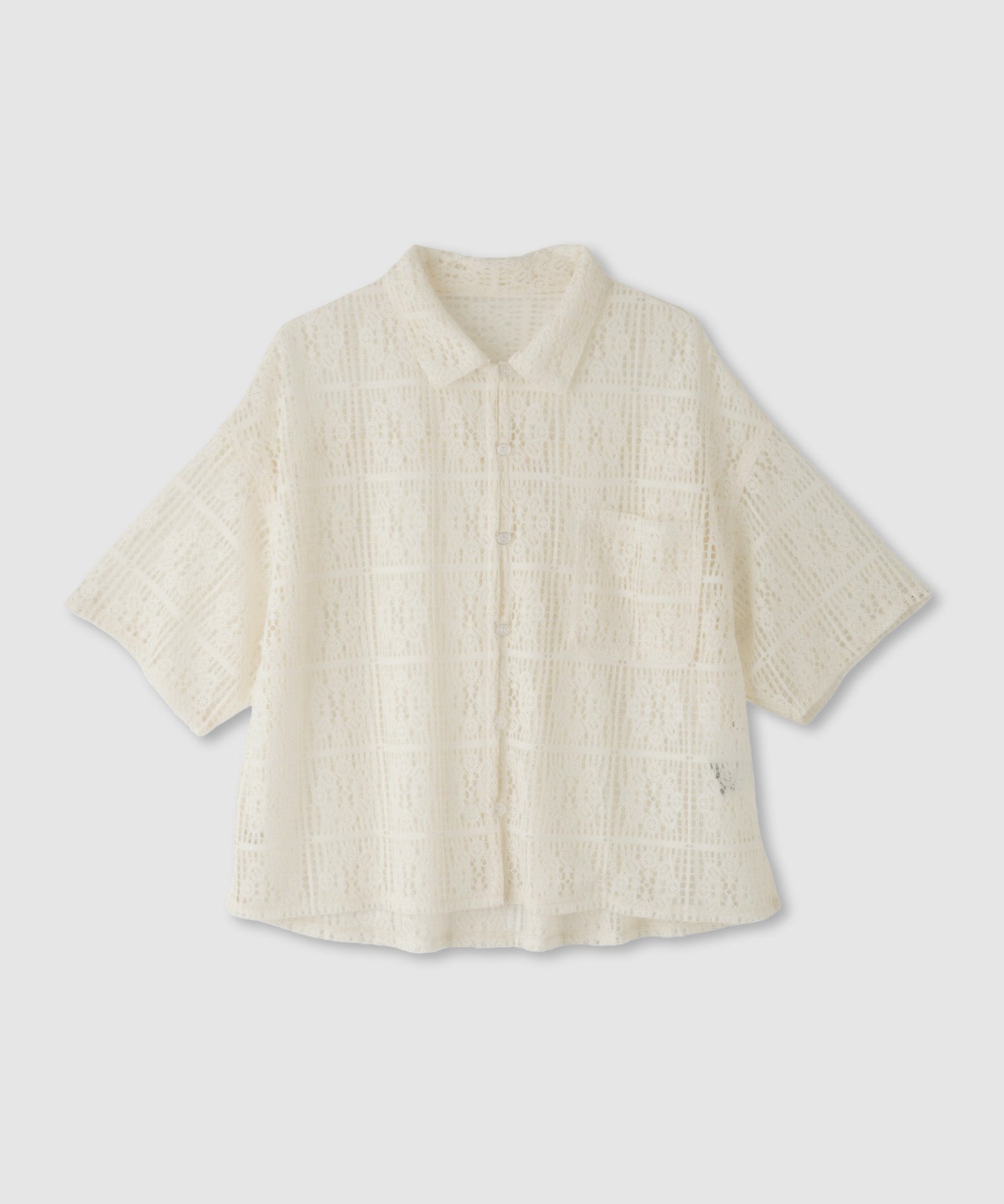 ブロックレース素材を使用した、トレンド感のあるクロップド丈シャツ。