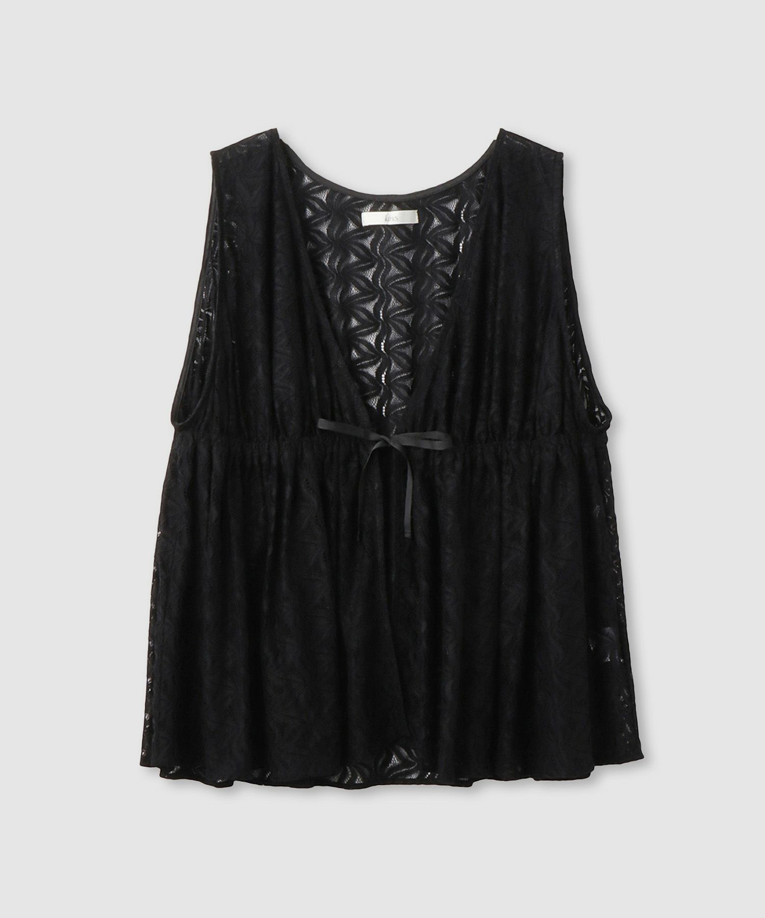 イドネス ジレ レース リボン ペプラム 透け感 ボタニカル柄 白 黒 ベスト