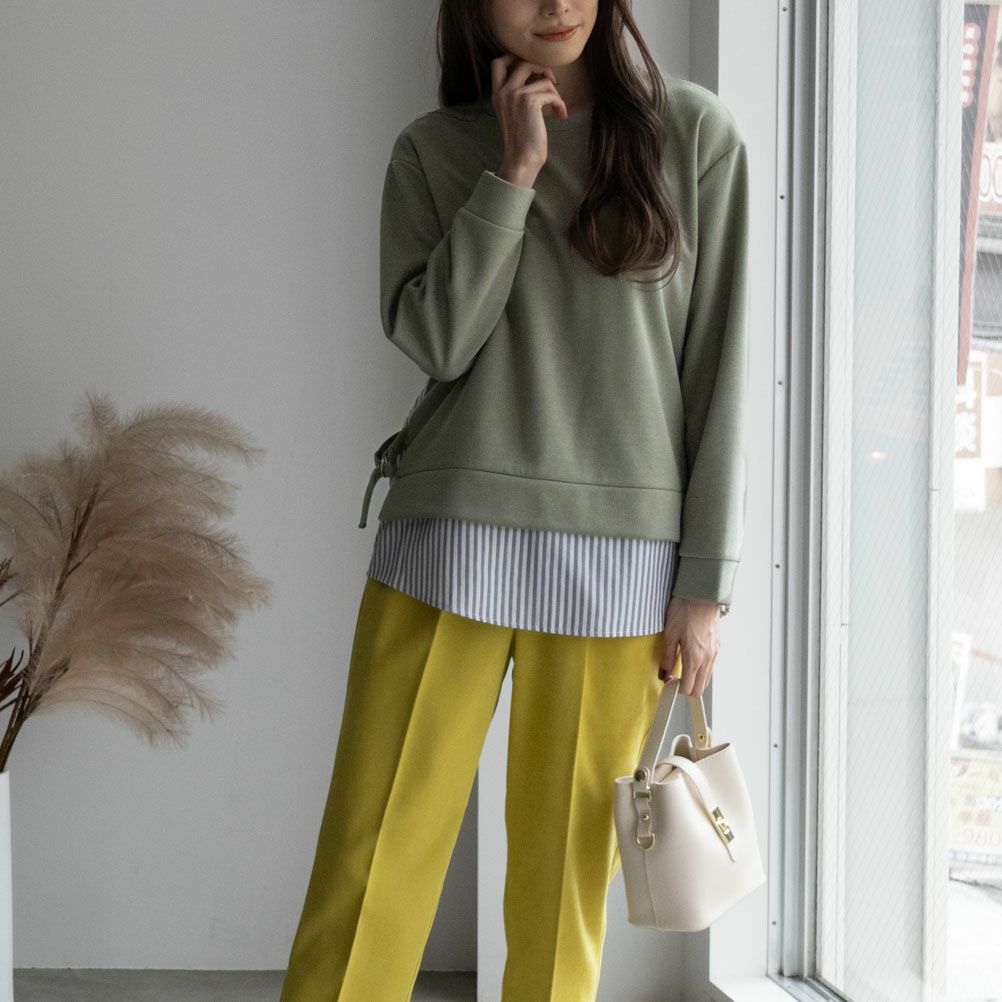 異素材切替のフェイクレイヤードプルオーバー。