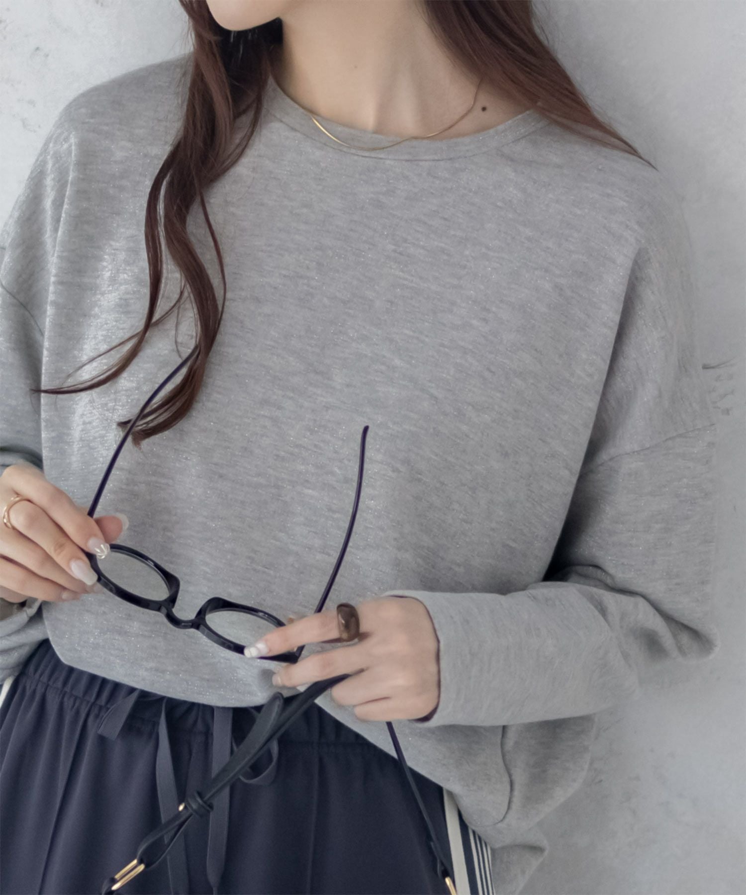 ほどよいラメ感が着やすいプルオーバー。