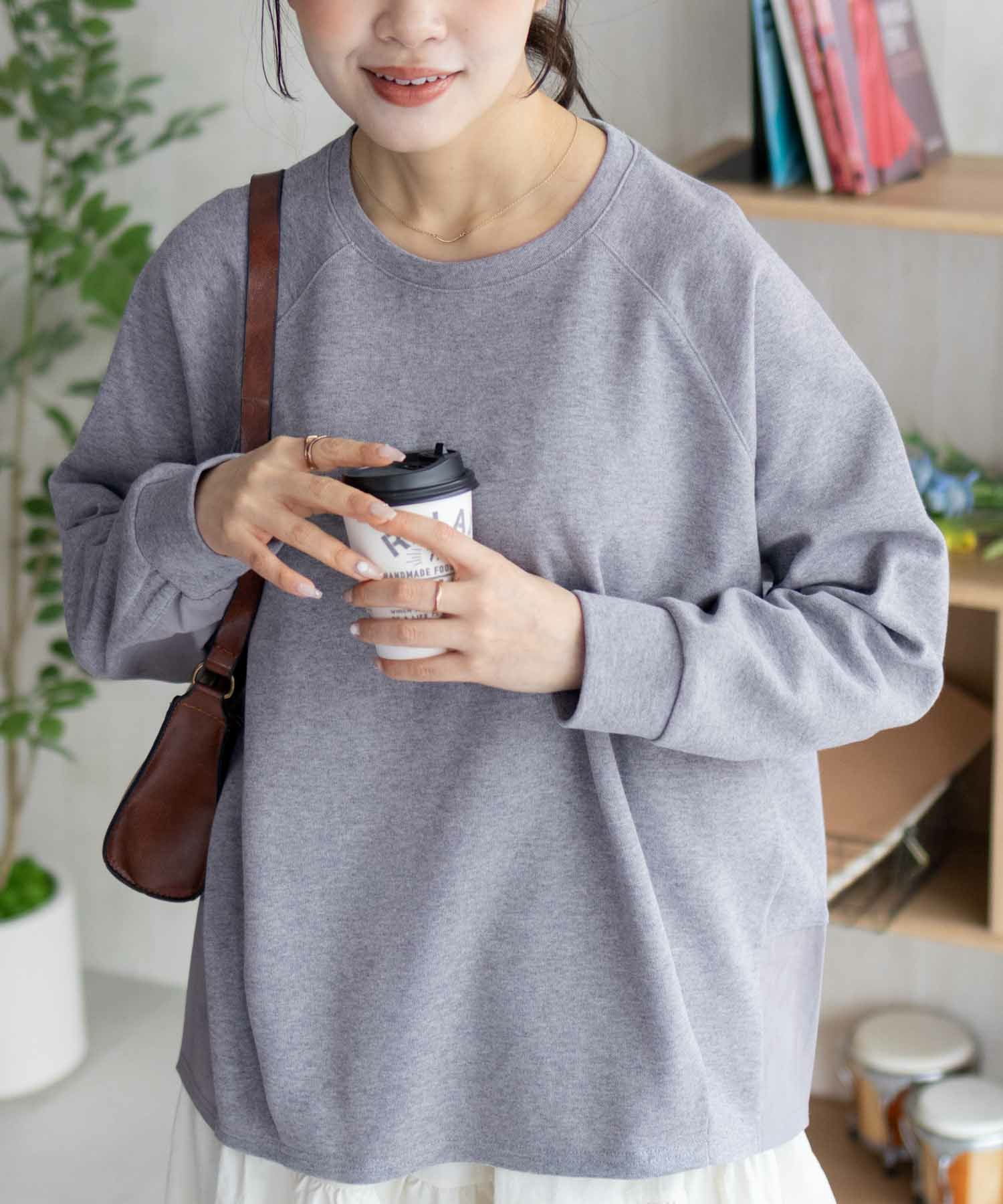 カットソー生地とナイロン生地が切替になった、異素材切替トレーナー。
