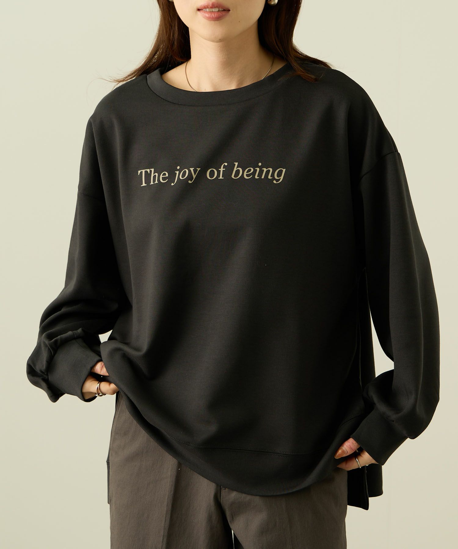 胸元にロゴプリントをあしらった裾スリットプルオーバー。