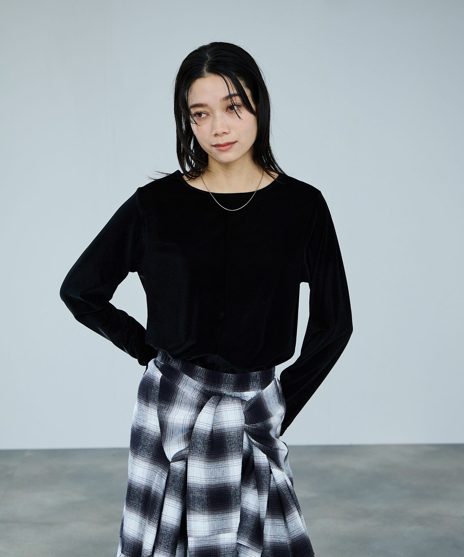 軽やかな艶感と抜け感を纏う、シアーベロア素材のロングスリーブトップス。