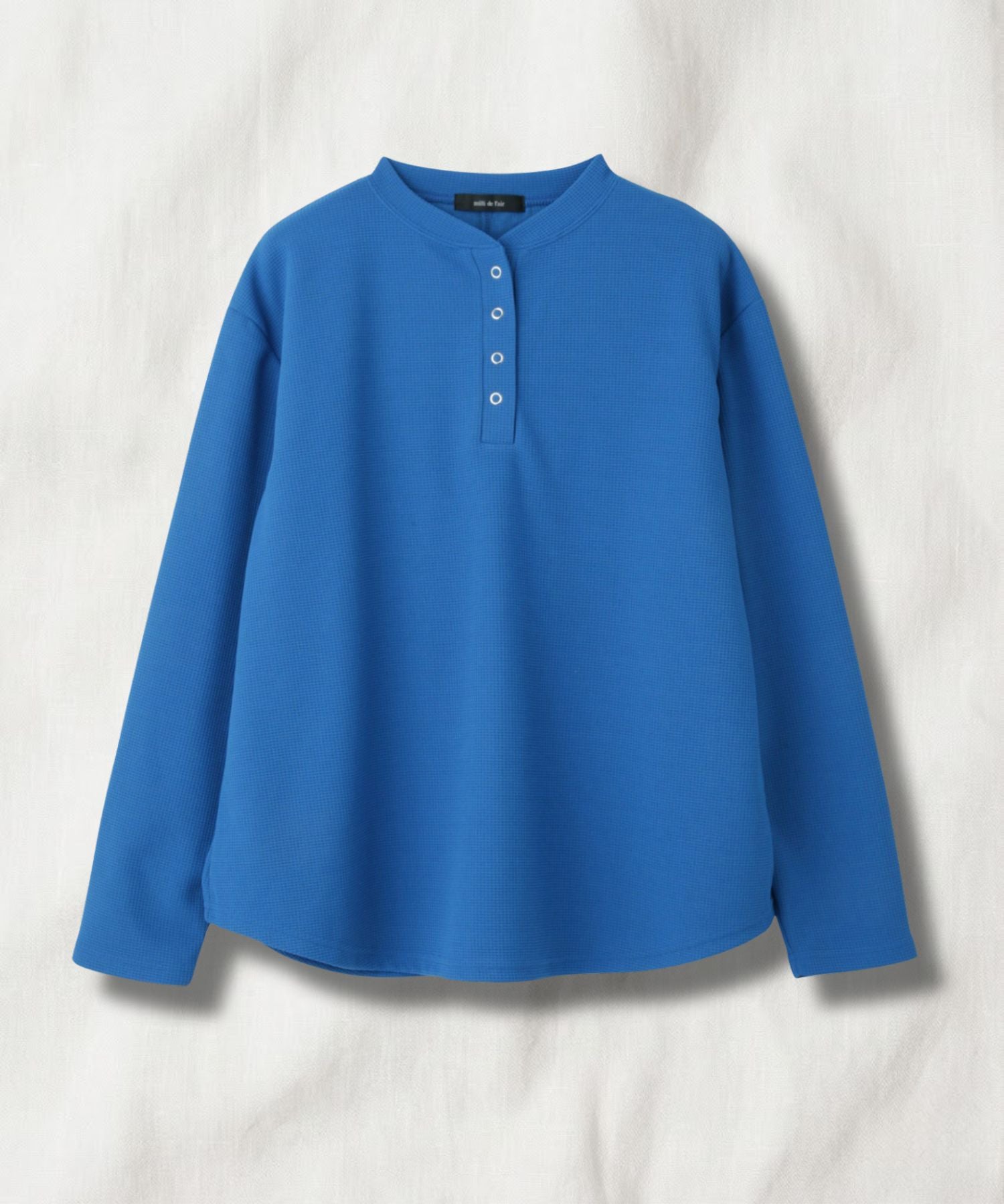 ミリデラール 長袖Tシャツ ロンT ワッフル素材 ヘンリーネック ゆったり 白 カットソー