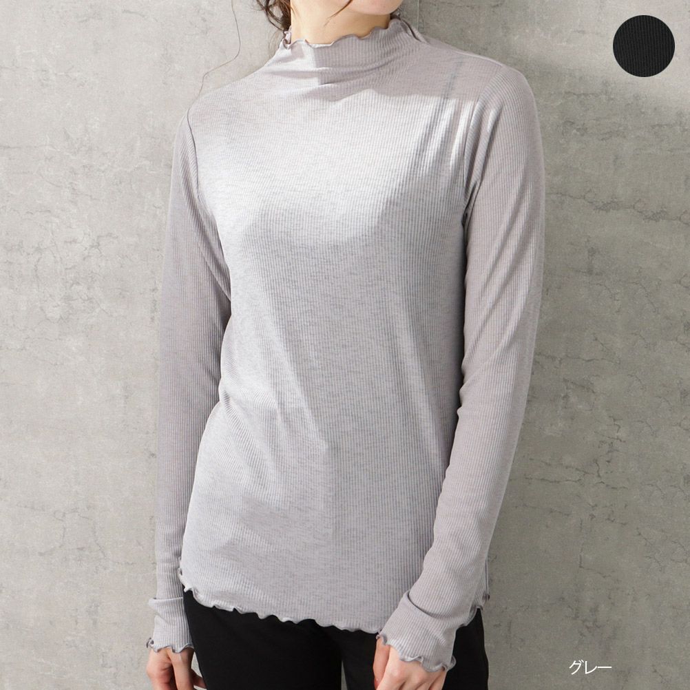 低めのハイネックスタイルでインナーとしての重ね着にも最適です。