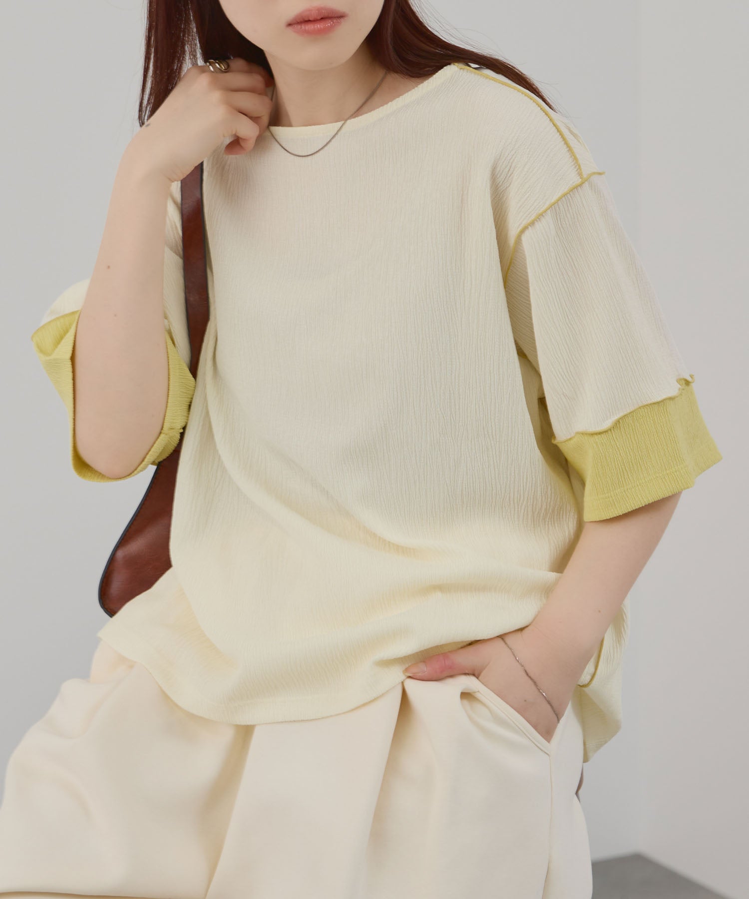 シボシボとした表面感が特徴のシャーリング生地を使用しています◎
