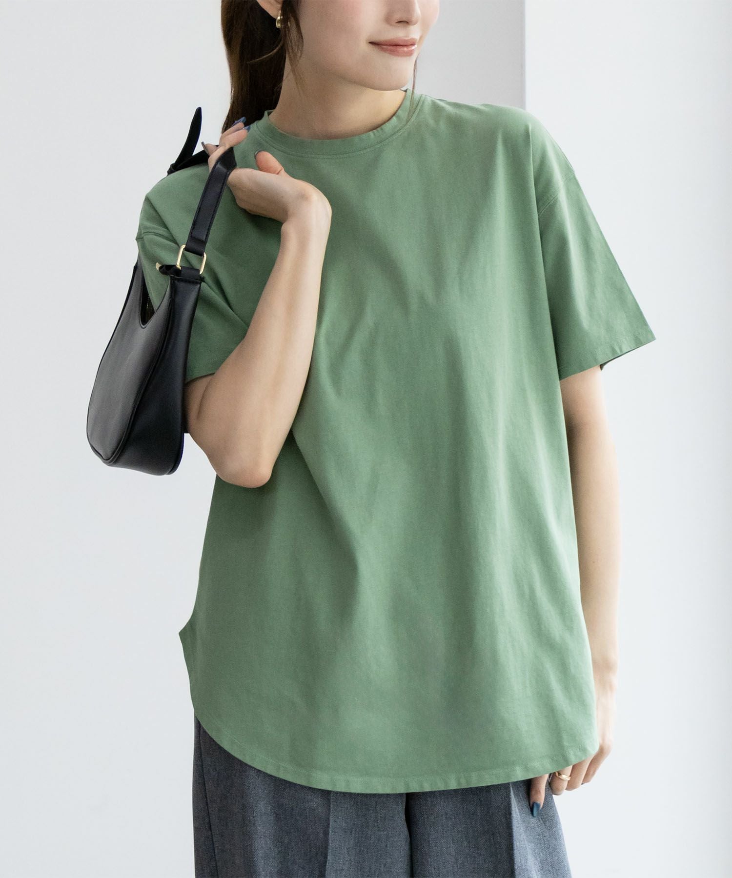 ラウンドヘムの柔らかなシルエットで、重ね着はもちろん、一枚でも決まるアイテム!