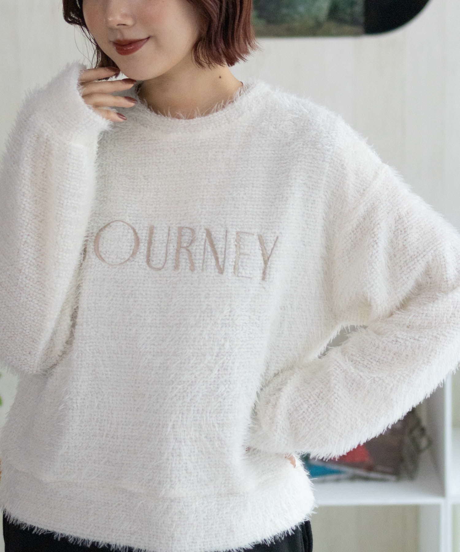 ふわふわなシャギー素材でフェミニン感たっぷりのロゴプルオーバーです。