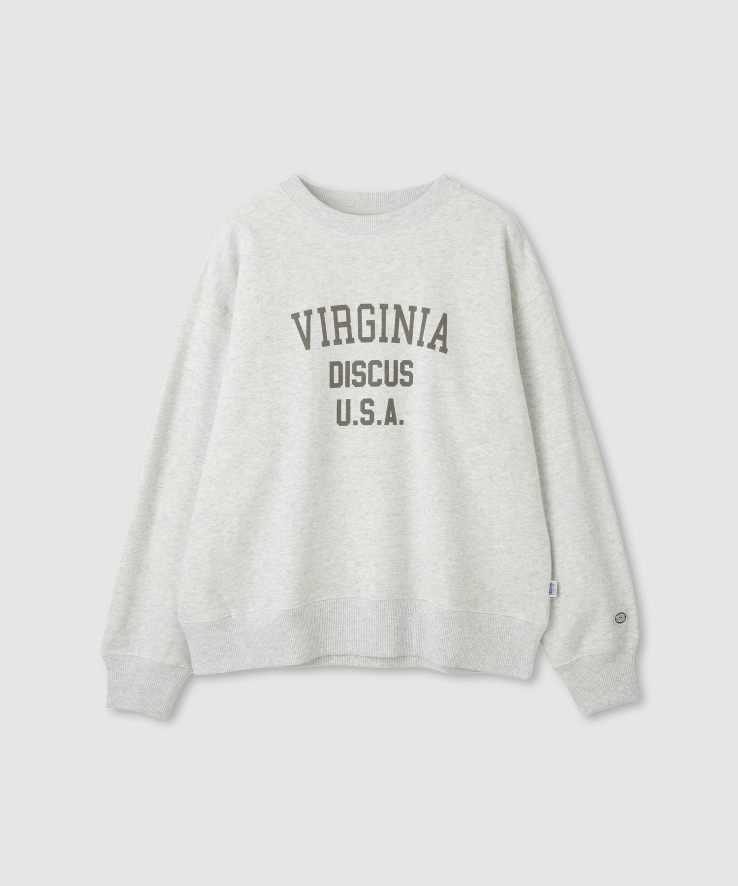 ディスカス トレーナー スウェット 裏起毛 暖かい あったか 綿100% コットン ワイドシルエット ゆったり 大きめ カレッジロゴ プリント 白 プルオーバー