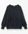 ネイビー ニット セーター 長袖 フェザー ふわふわ 黒 無地 Vネック