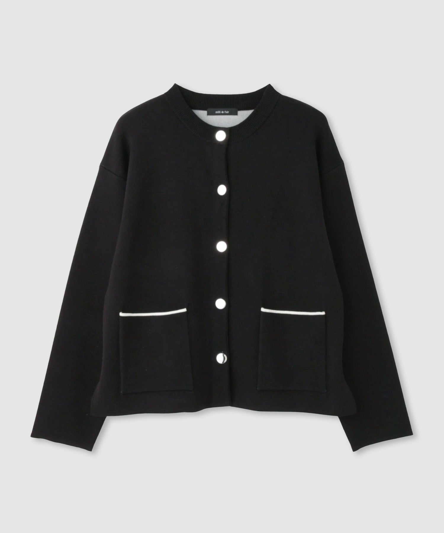 ミリデラール ニット カーディガン ジャケット アクセントカラー 配色 ボタン 黒 長袖 クルーネック Uネック ライトアウター 羽織り