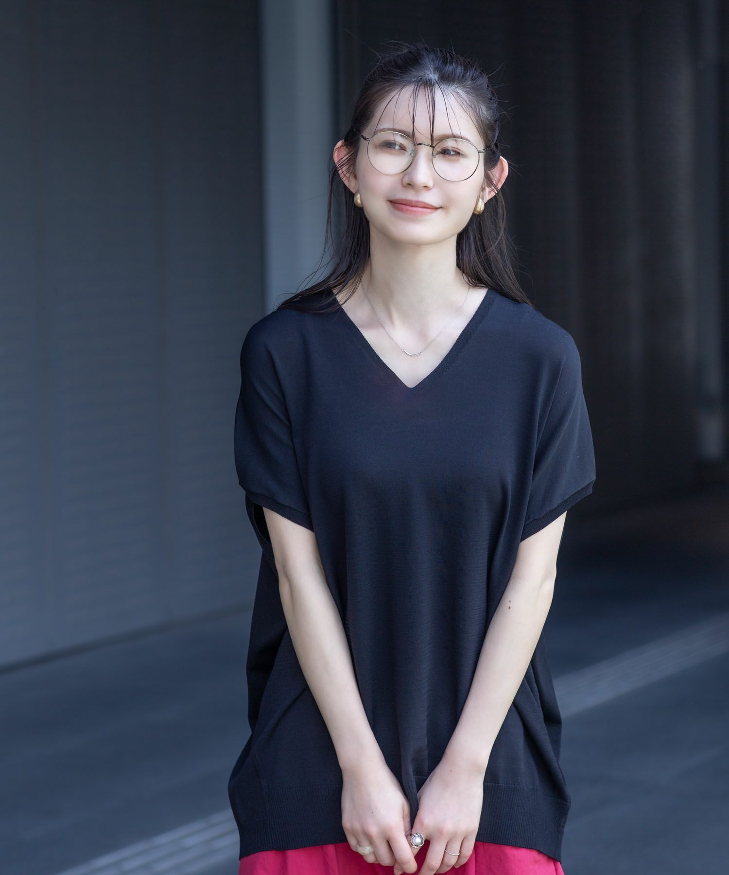 浅いVネックとコクーンシルエットがポイントのニットプルオーバー。