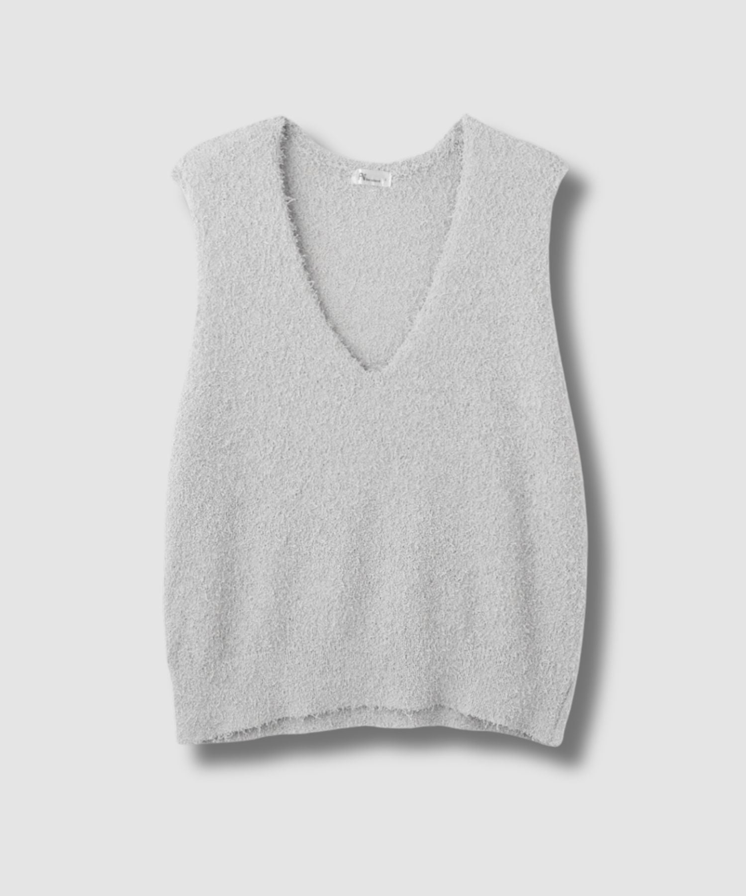 くるくるとした素材感が可愛い、いつものコーデを格上げする旬顔ベスト。