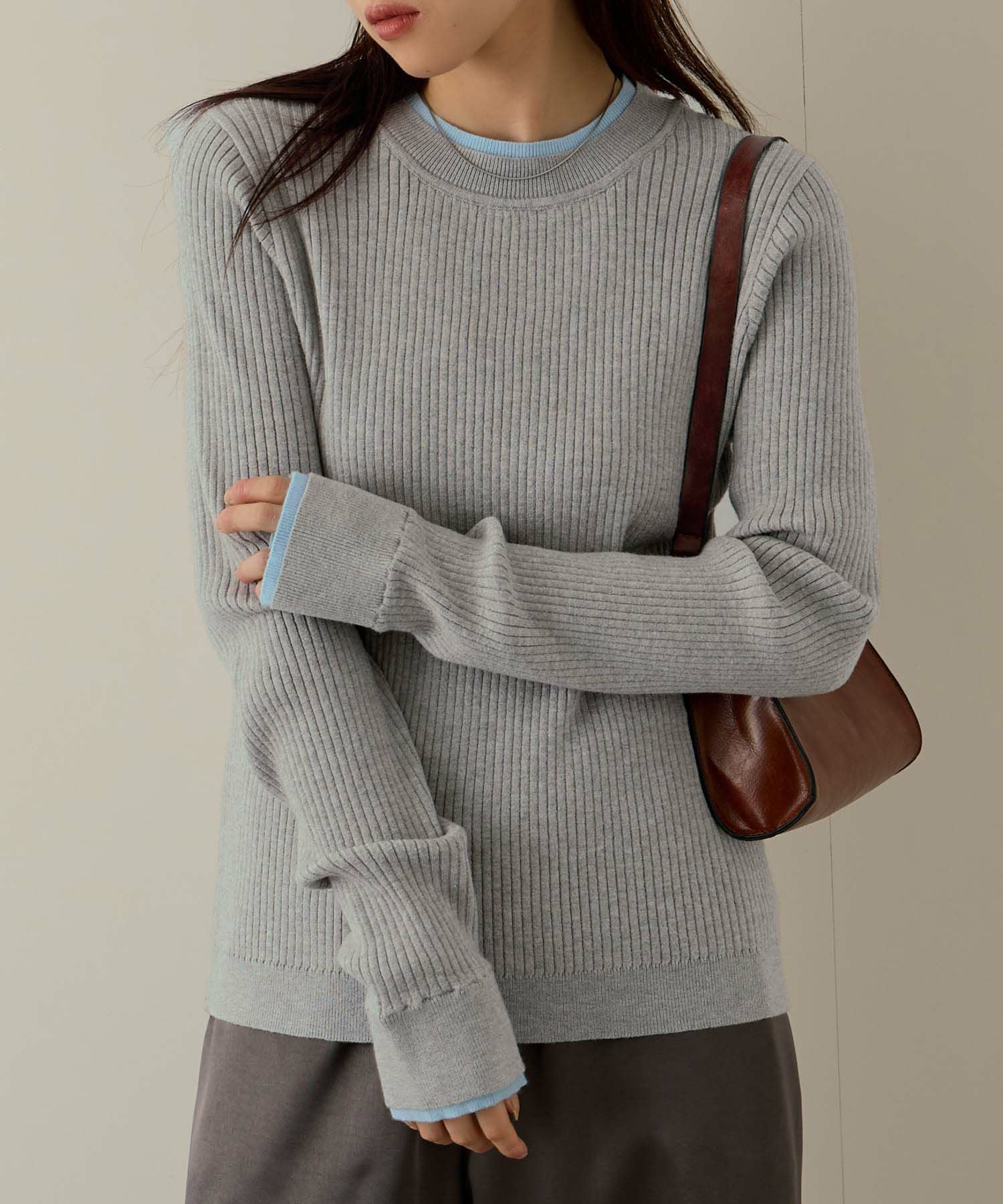 インナーとして大活躍のリブニットプルオーバー。