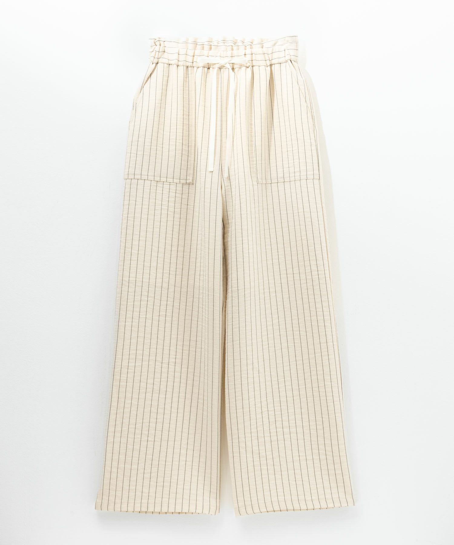 イドネス ワイドパンツ ポケット ウエストゴム 紐 無地 ストライプ 白 黒 ロングパンツ