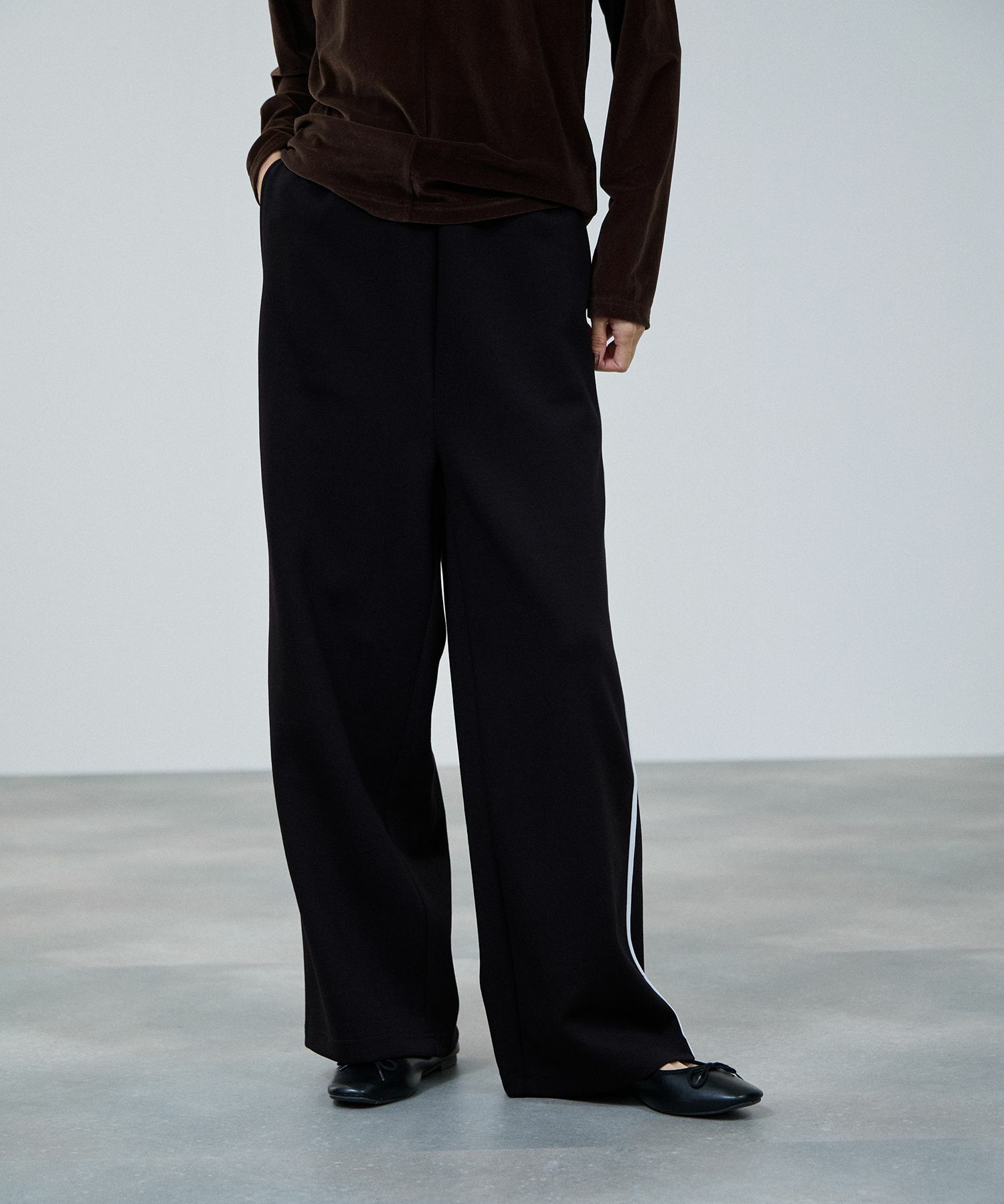 もっちり軽やかなポンチ素材を使用した、ストレートシルエットのラインパンツ。
