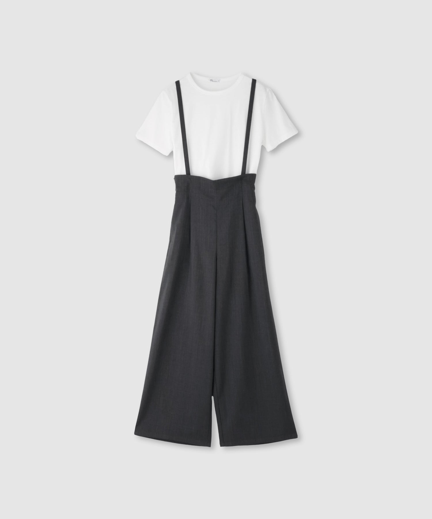 セットでコーデが完成する、Tシャツ付きサロペットパンツ。