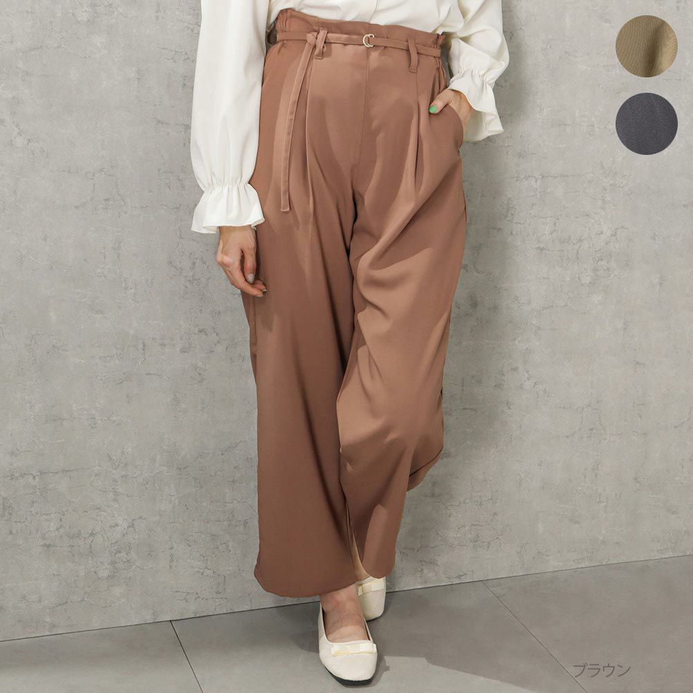 ハウディーマリー ワイドパンツ 無地 ベルト付き バックゴム ポケット ロングパンツ