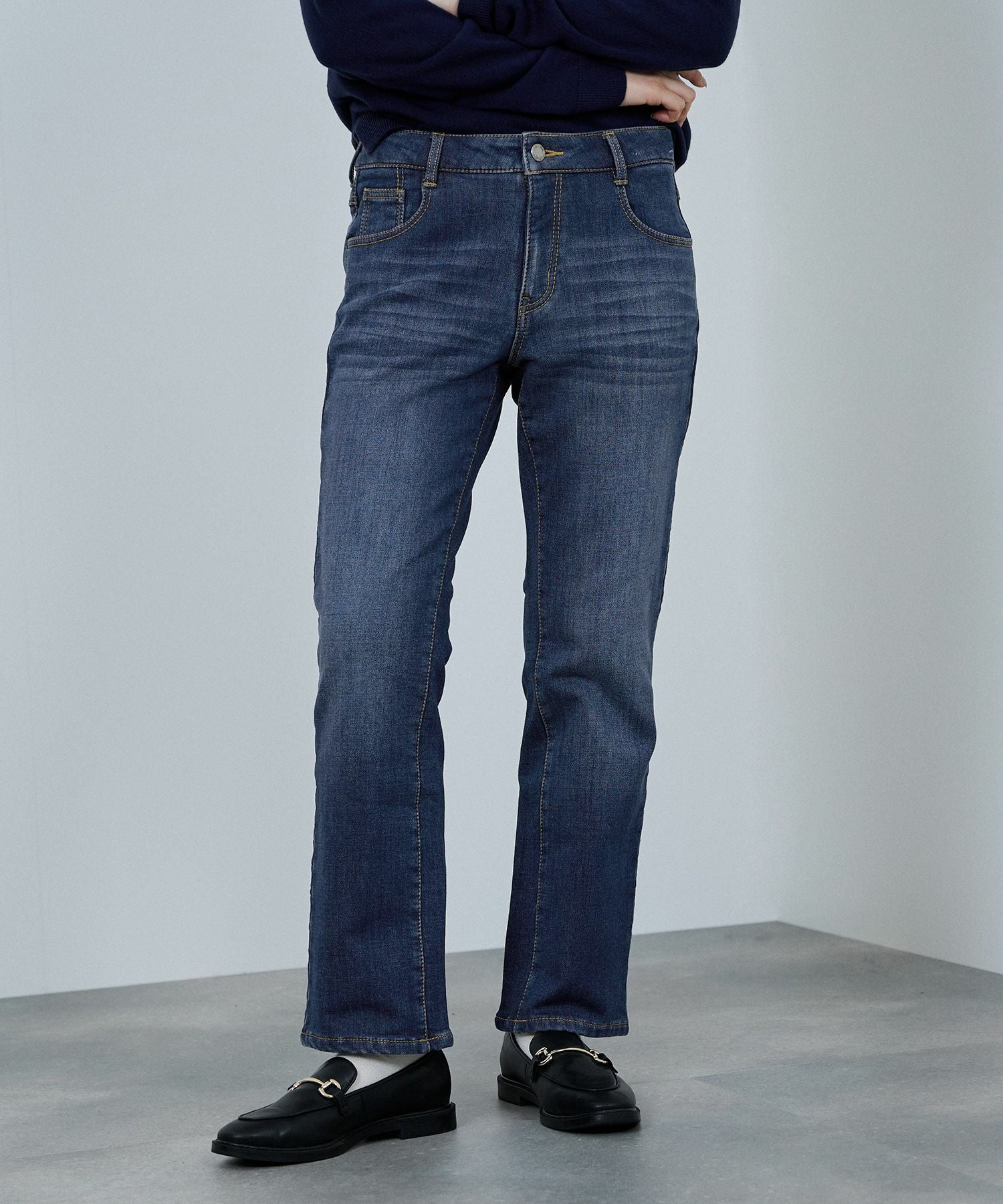 ネイビー デニムパンツ ジーンズ ジーパン ストレートパンツ 細身 スリム 裏起毛 暖かい あったか ポケット 黒 ロングパンツ