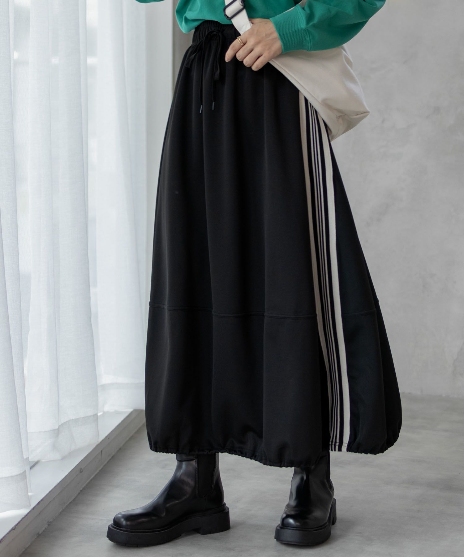 トレンドのサイドラインが入ったバルーンスカートです。