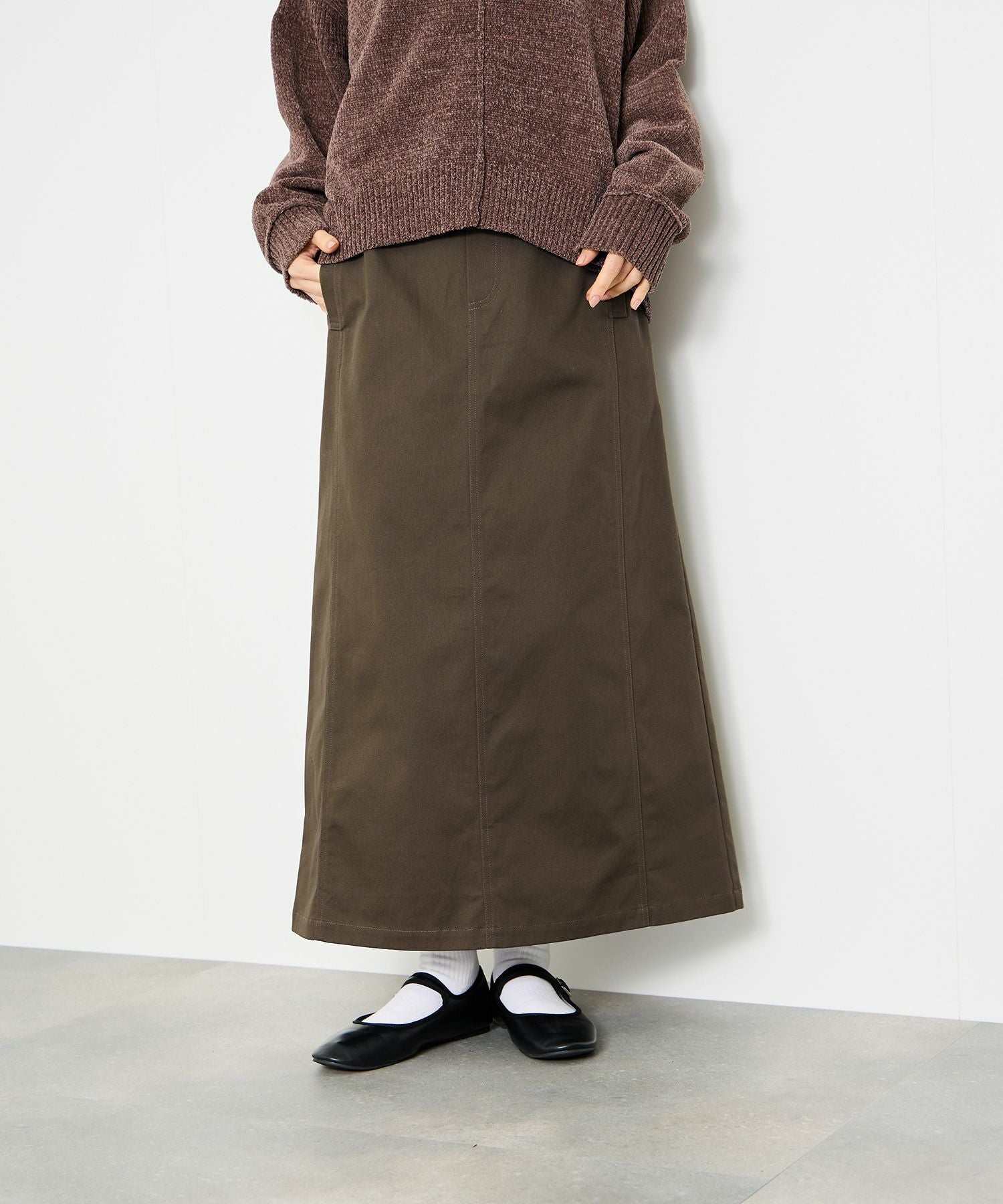 ナチュラルなAラインが抜け感をつくるロングスカート。