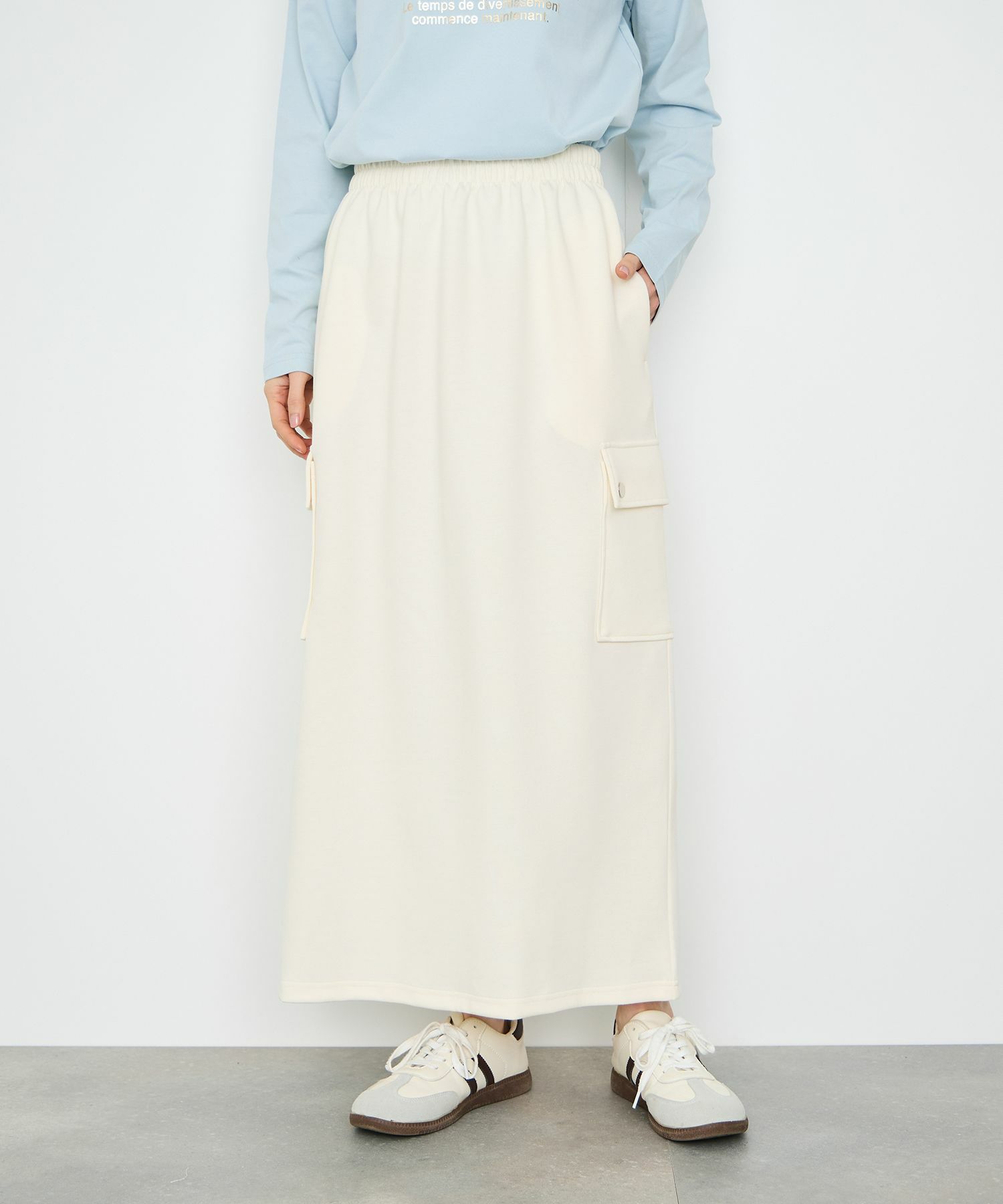 イドネス カーゴスカート ウエストゴム バックスリット 白 ロングスカート