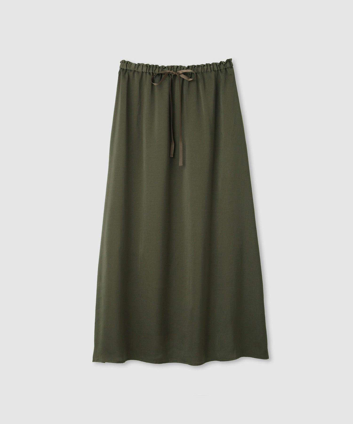 ほんのり光沢感のあるサテン素材が女性らしさを引き立てるナロースカート。