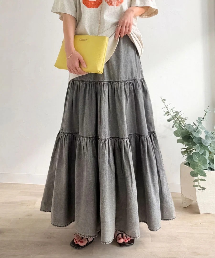 歩くたびドラマチックに揺れる3段ティアードとヴィンテージライクなシワ加工がこなれ感を演出。
