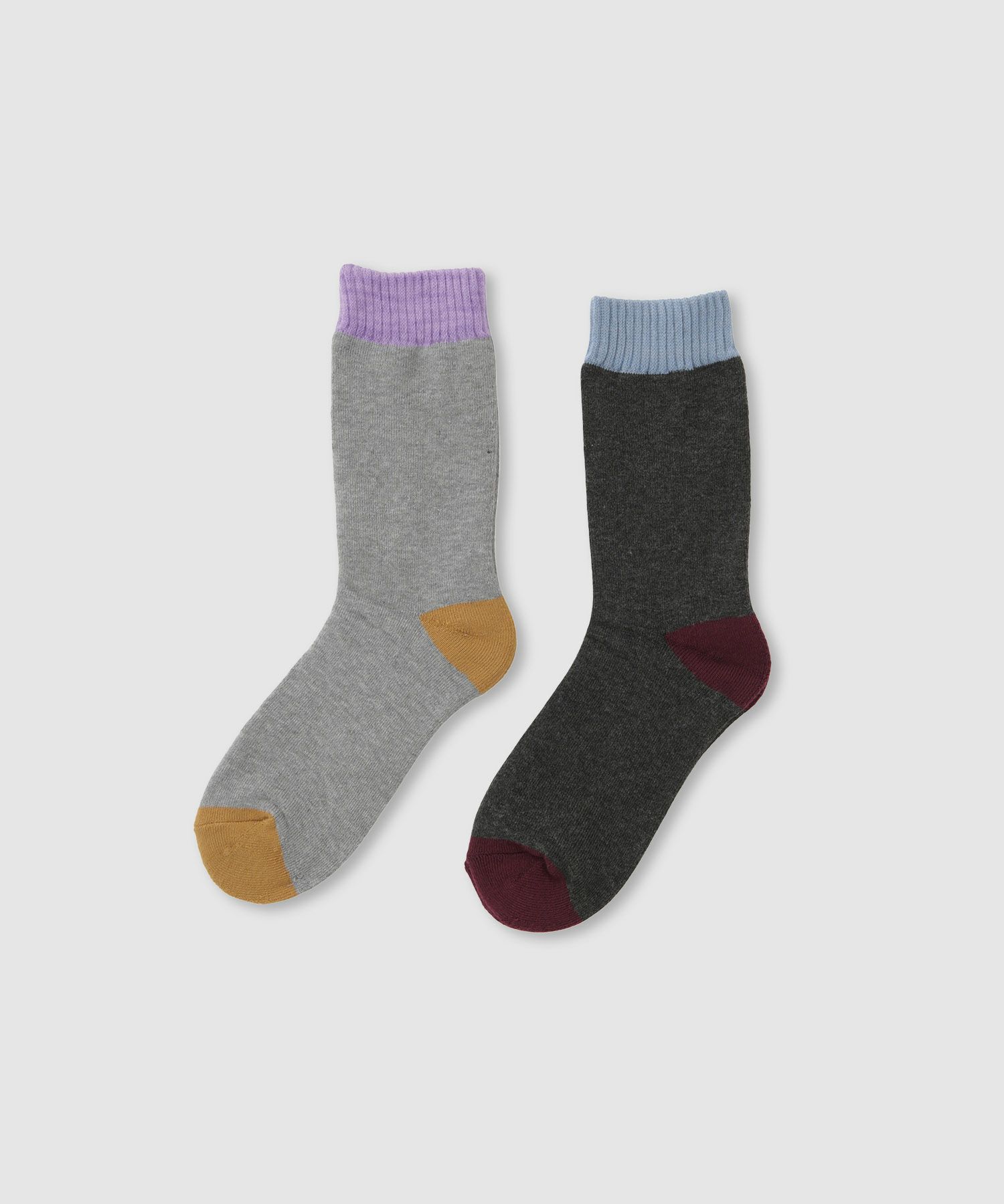 ネイビー 靴下 ソックス 2足セット クルー丈 パイル あったか 温活 はき口 ゆったり 配色 切替 冷え対策 くつ下