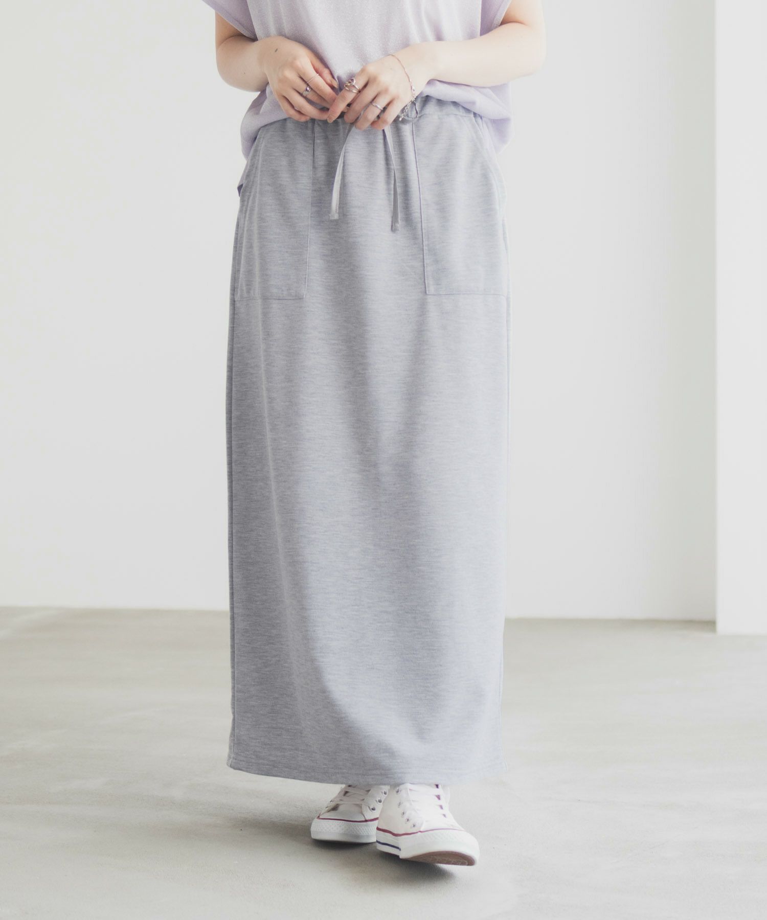 スウェット素材のナロースカート。