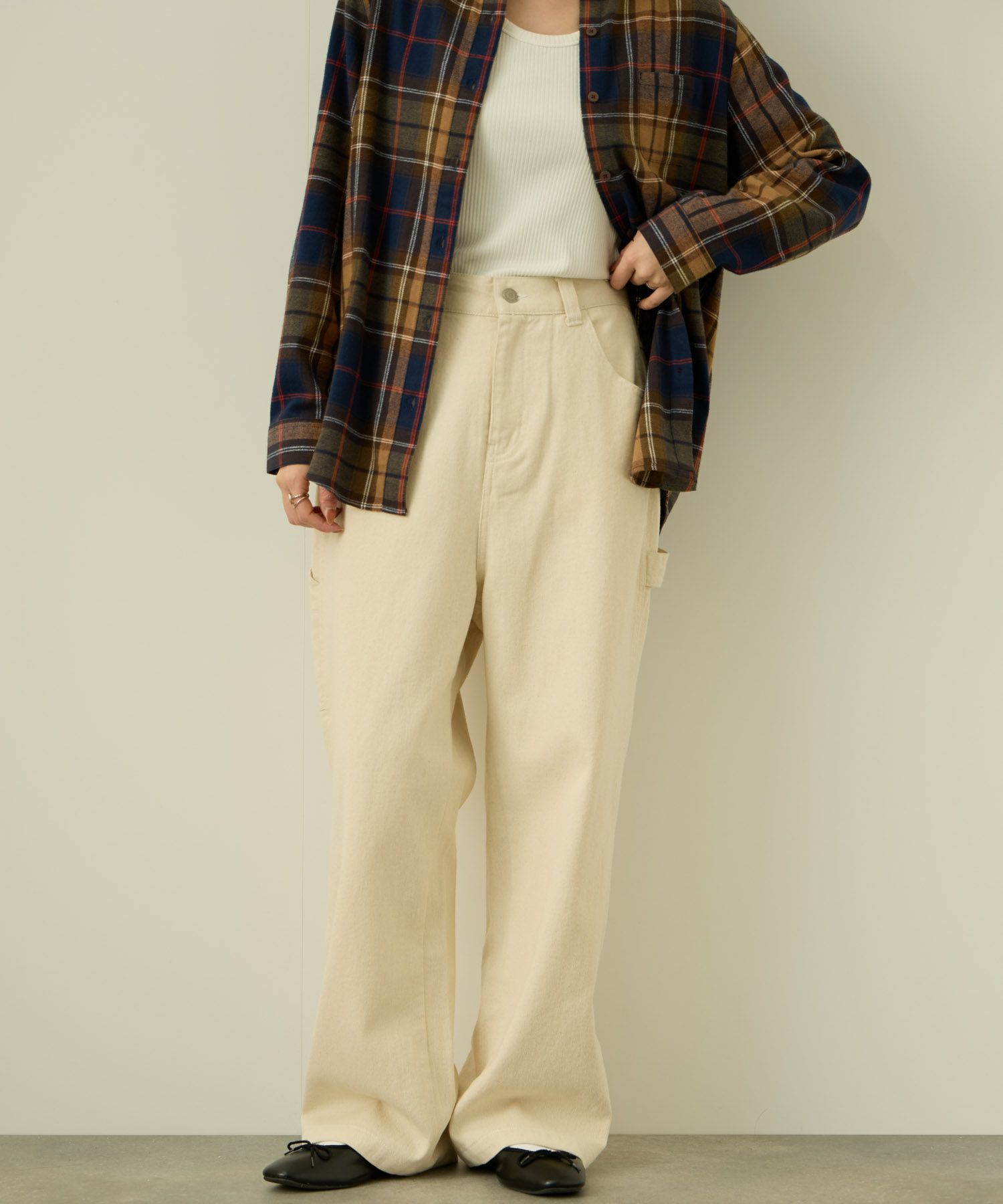 ワイドシルエットのペインターパンツ。