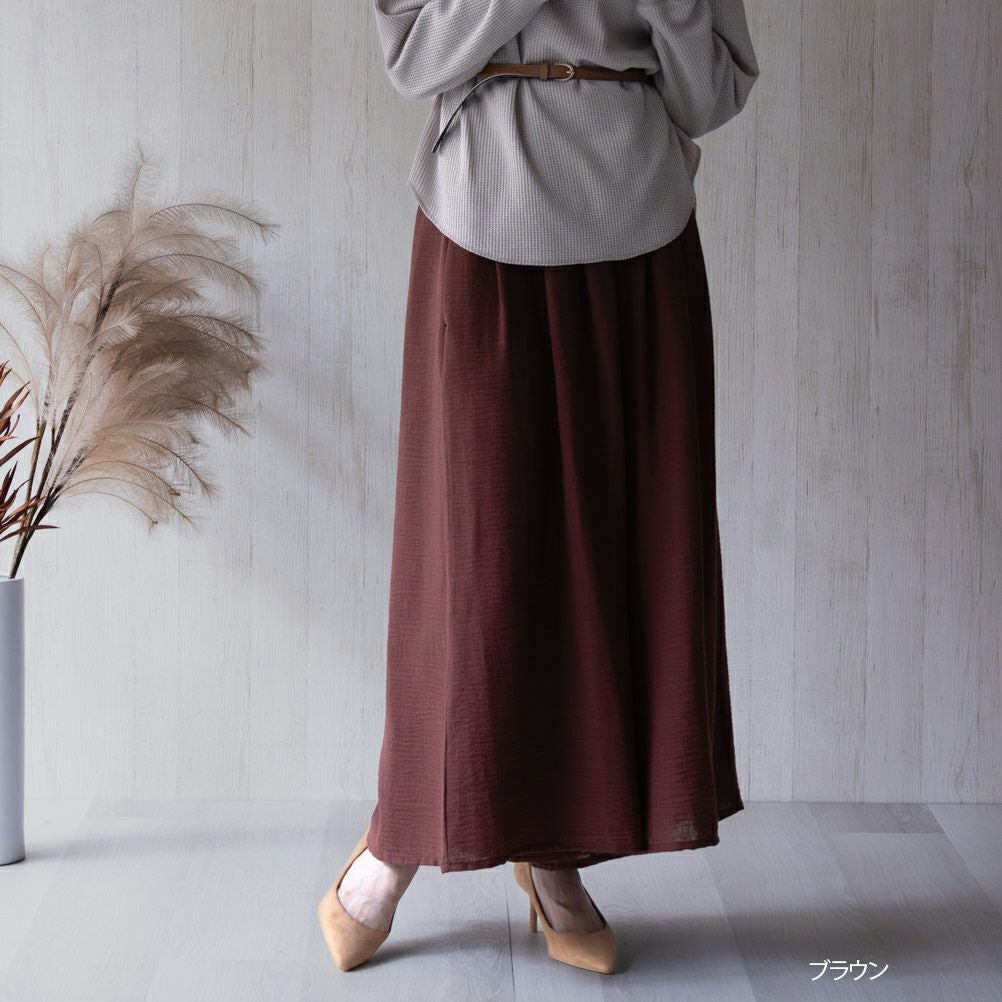 ネイビー イージーパンツ ワイドパンツ ベルト付き ポケット 無地 ウエストゴム ロングパンツ スカーチョ スカート風