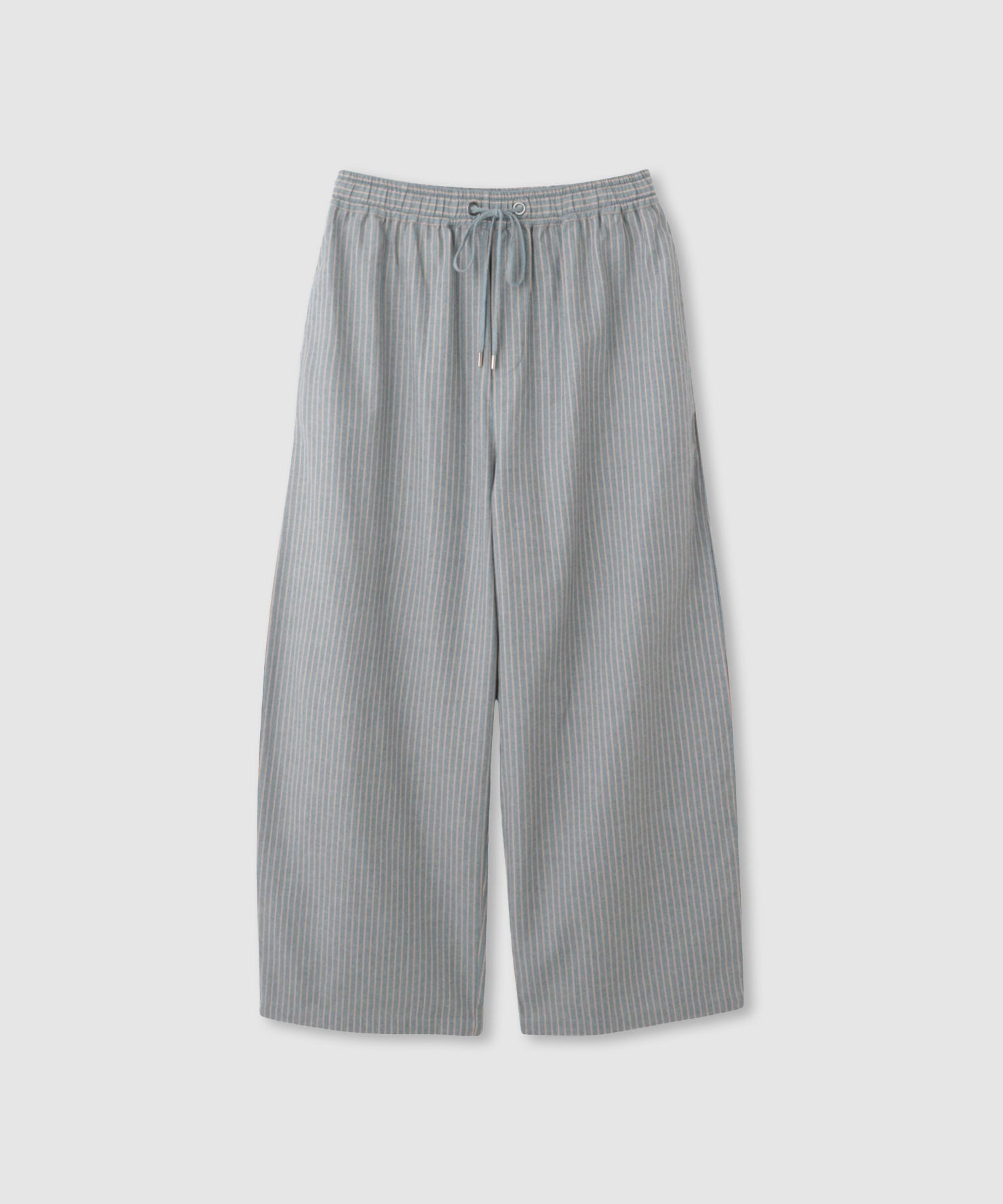 縦のラインを強調するストライプ柄と落ち感のあるシルエットで、ゆったりとしたはき心地ながらすっきりとした印象に仕上がります。