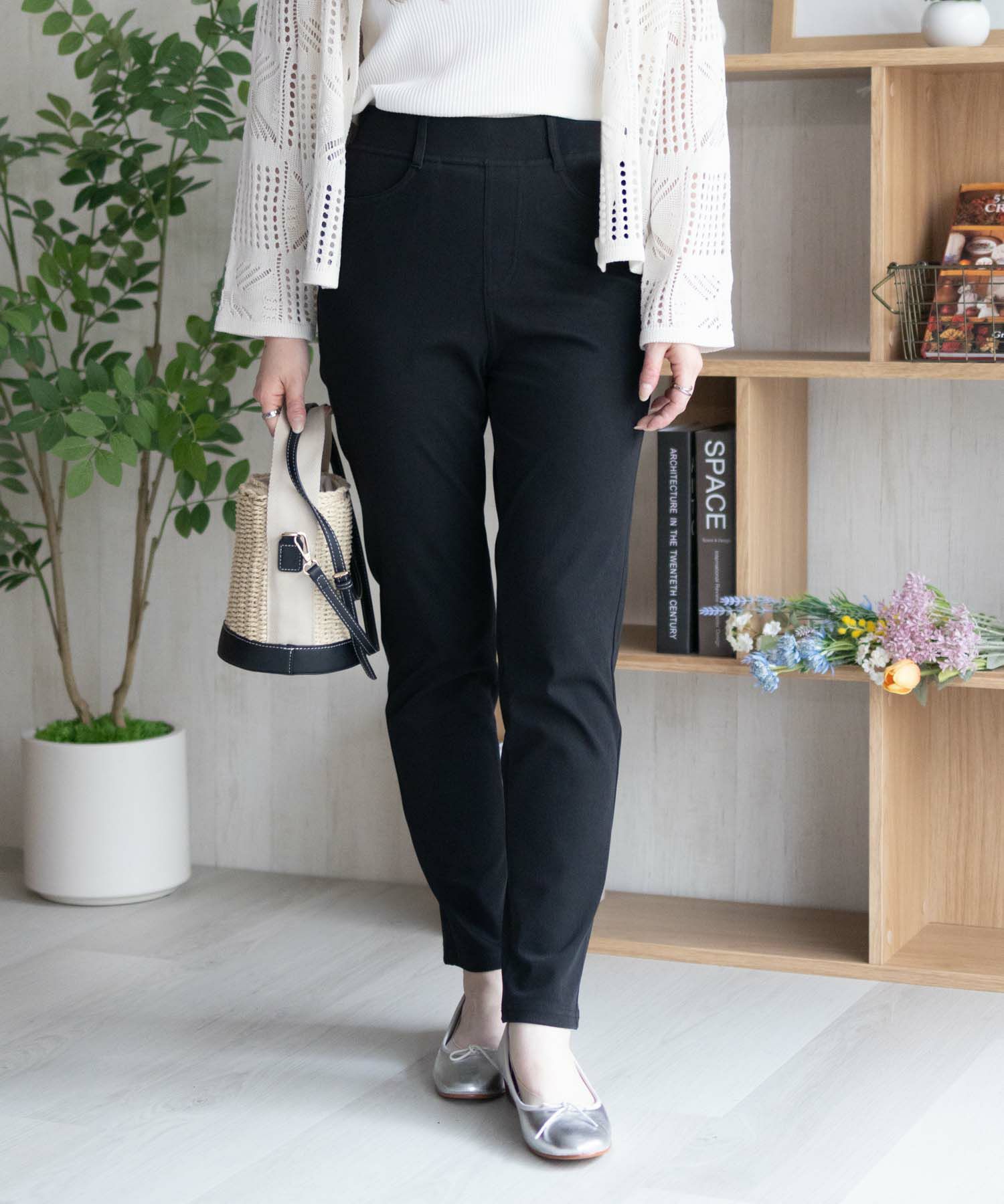 細身のストレートラインで脚をすっきり長く見せます。