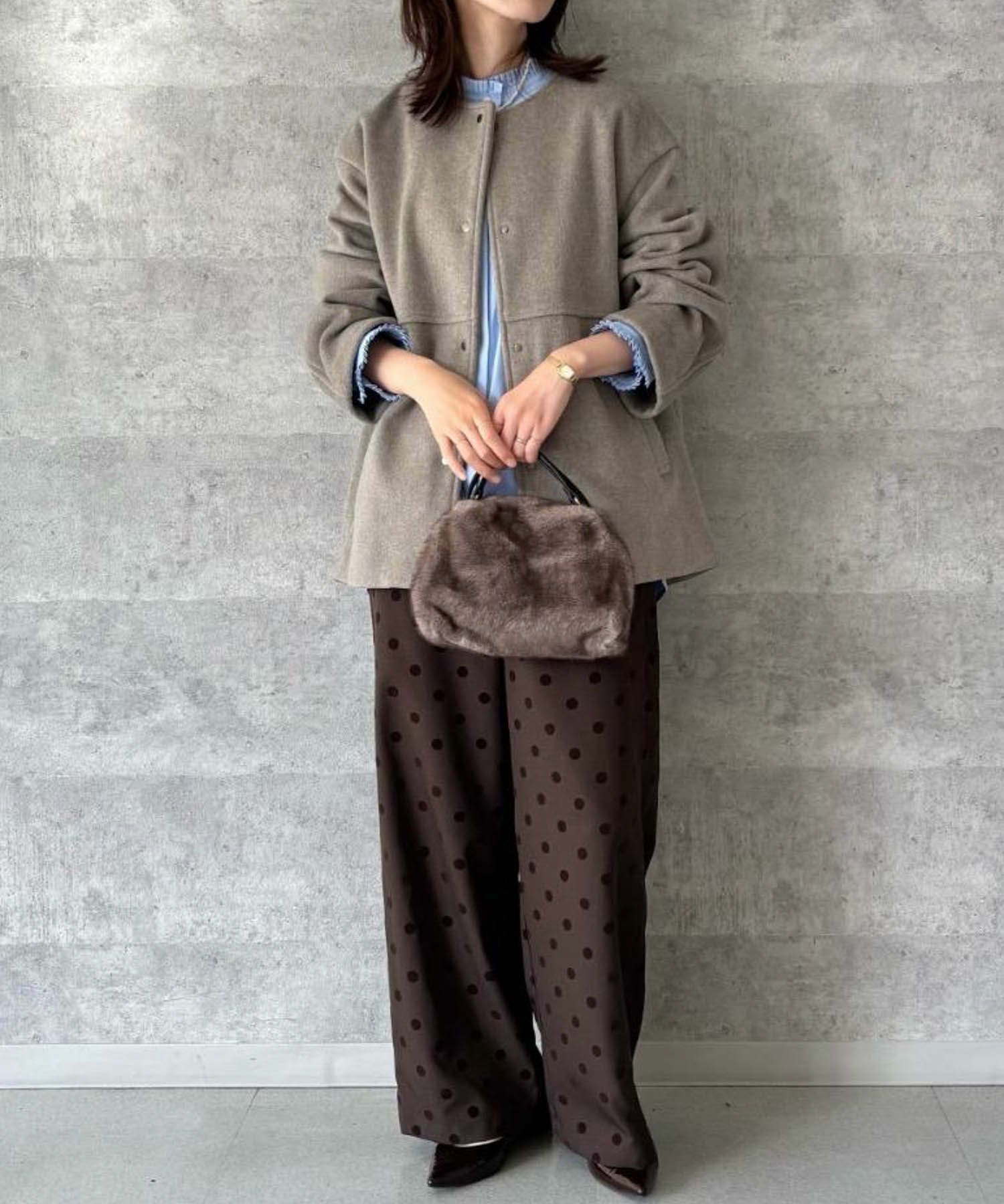 マフラーやストールなどの小物使いもしやすく、幅広い着こなしが楽しめます。