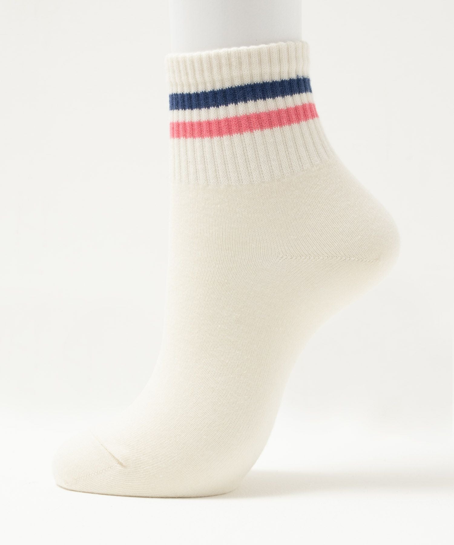 ネイビー 靴下 ソックス 1足 リブ ライン 白 クォーター丈 くつ下
