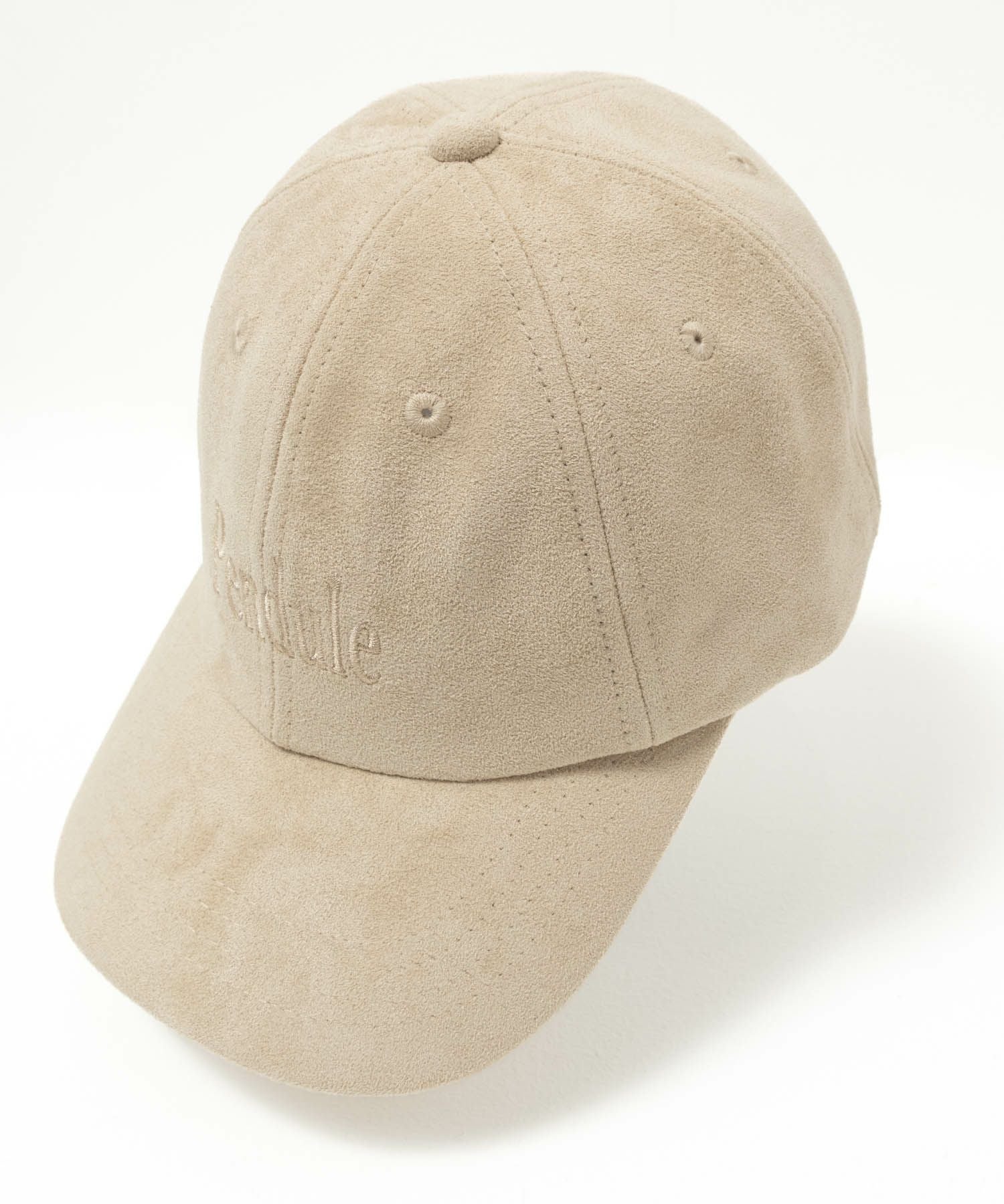 スエードのような生地感のキャップです。