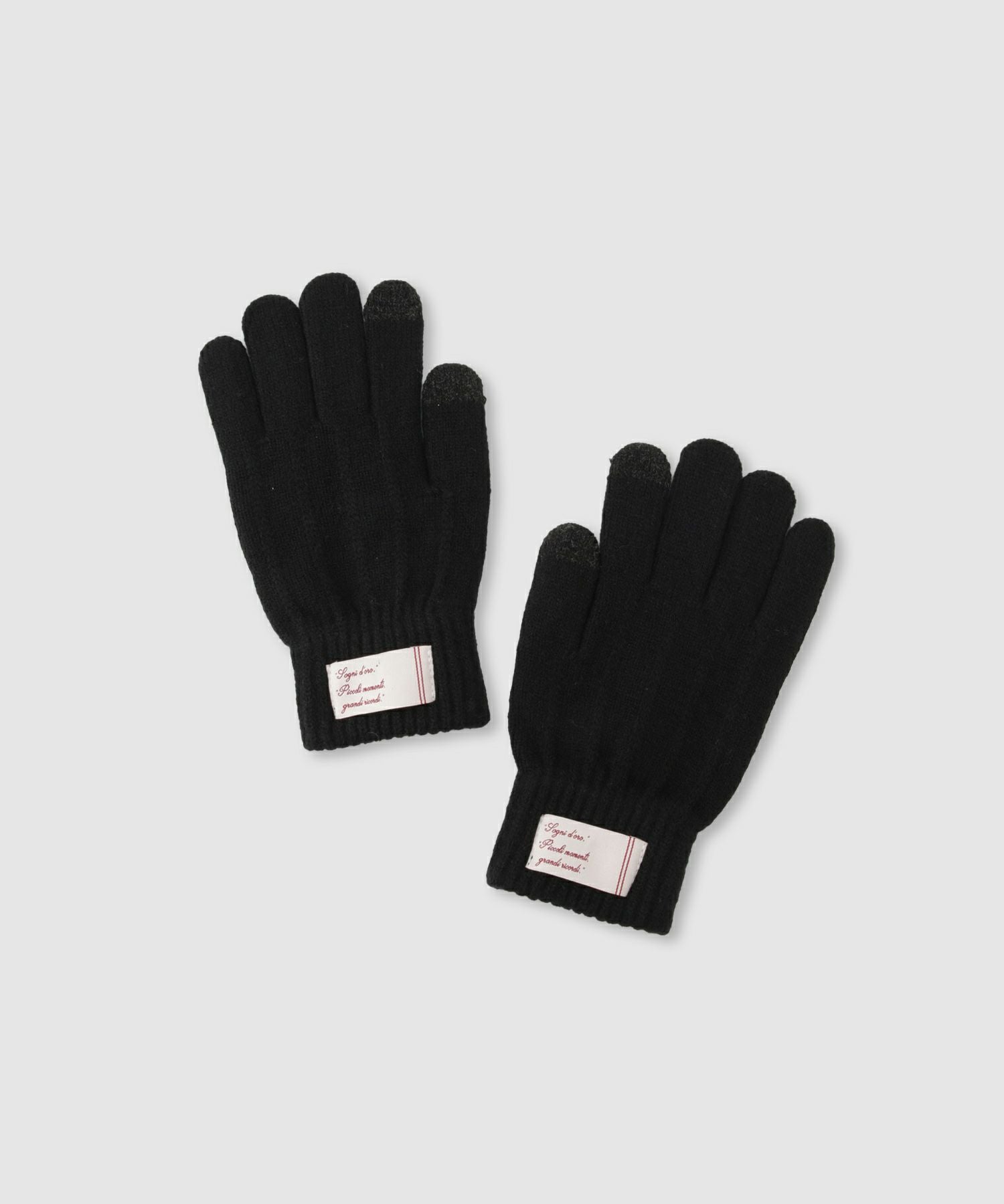 手袋 ニットグローブ スマホ対応 白 黒 無地 シンプル 五本指 防寒 あったか プレゼント ギフト