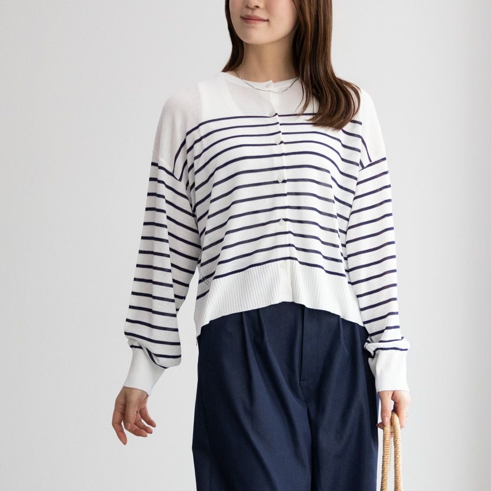 ハッシュアッシュ カーディガン シアーニット 透け感 サイドスリット 前後差 ボーダー 無地 アイレット クルーネック