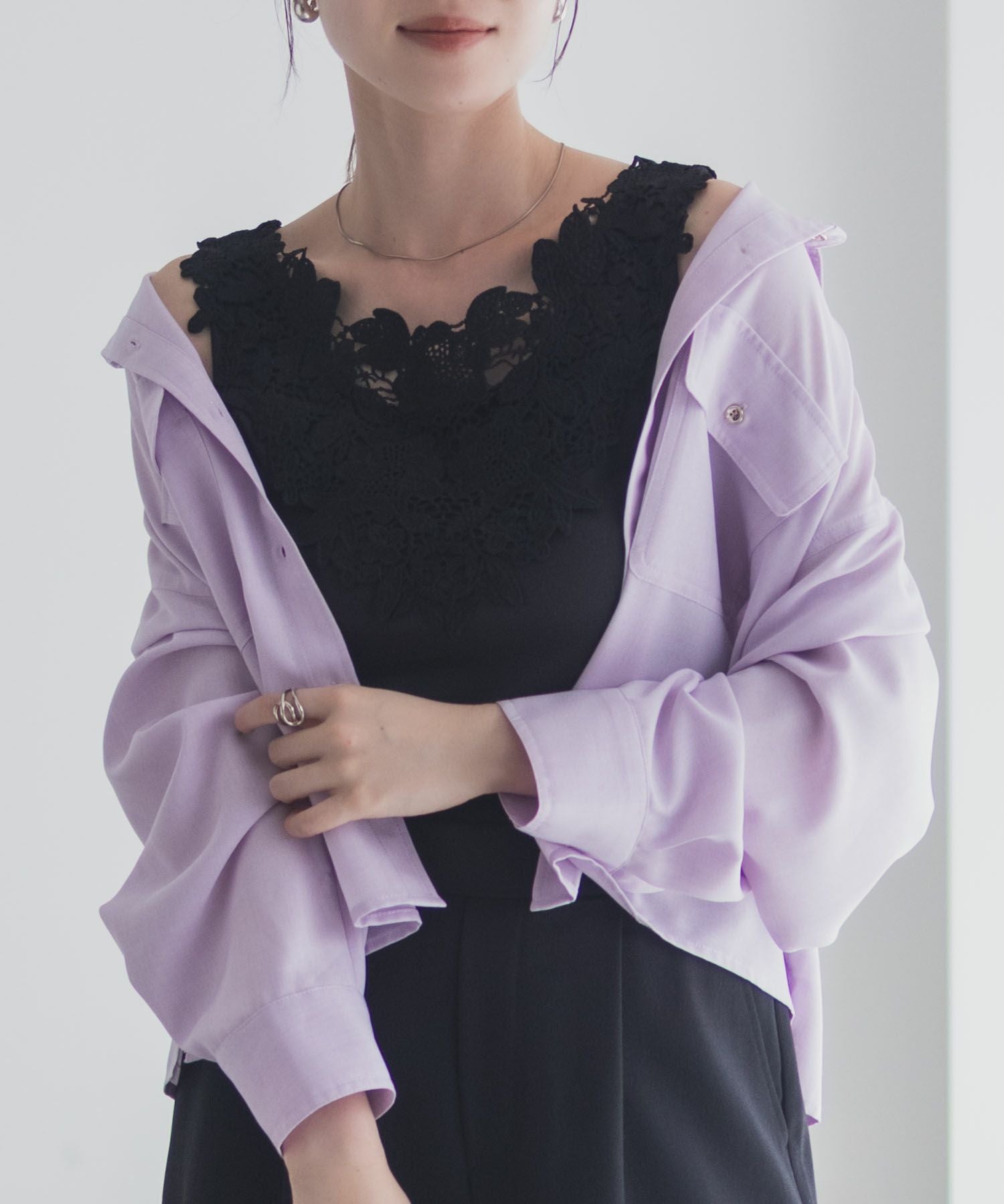 シャツやニットと合わせれば肩や背中部分からチラ見せできるレースがスタイリングの名脇役に!
