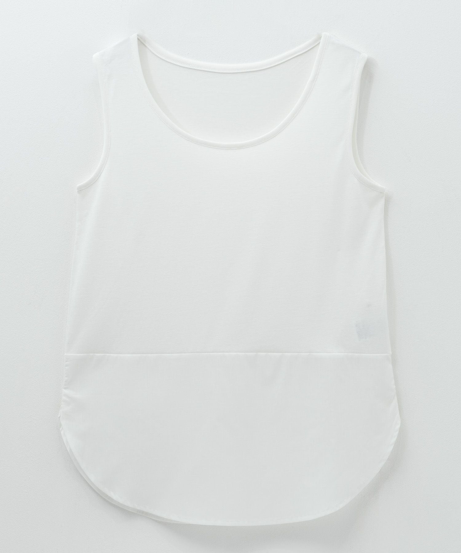 イドネス タンクトップ フェイクレイヤード ラウンドヘム 異素材切替え 白 無地 シンプル ノースリーブ