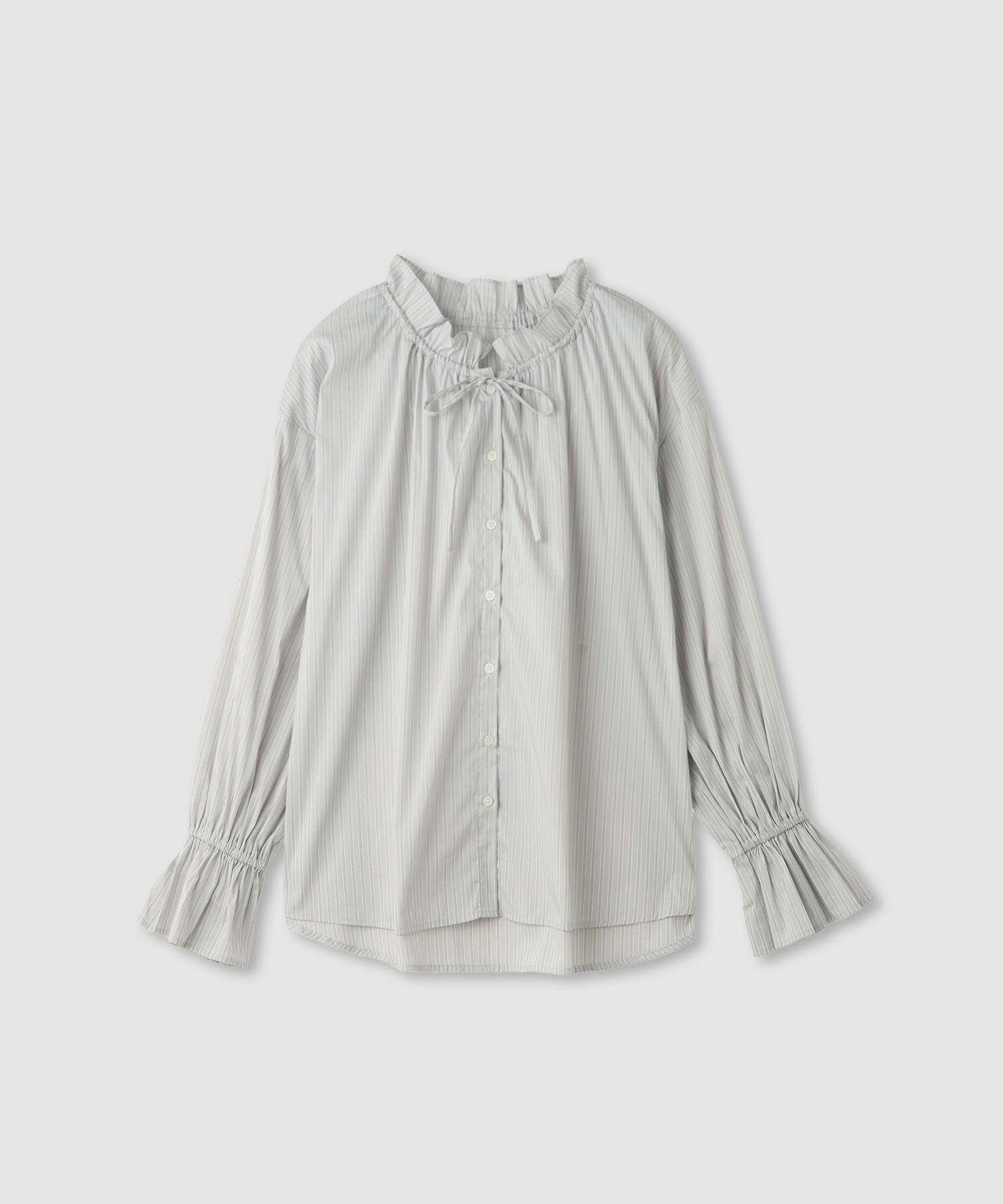 袖のシルエットにもアクセントがつけられるゴム入りの袖口で、まくったり、ニットと重ねても可愛いようにフリルディテールになっています。