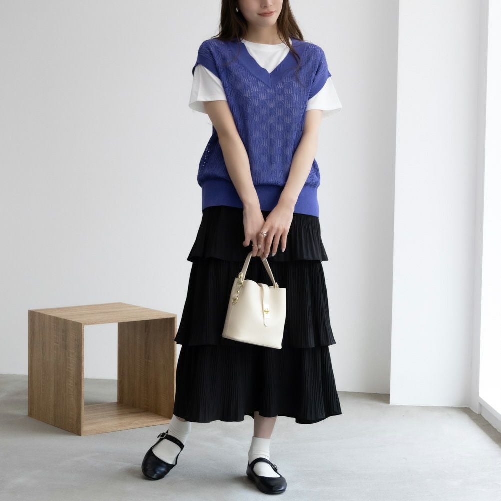 透かし柄がこなれ感のあるニットベストと