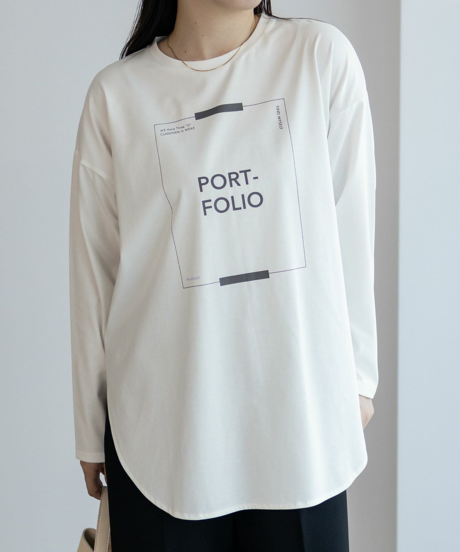 「ポートレイト」をテーマにした使いやすいサイズ感のロゴ長袖Tシャツ。