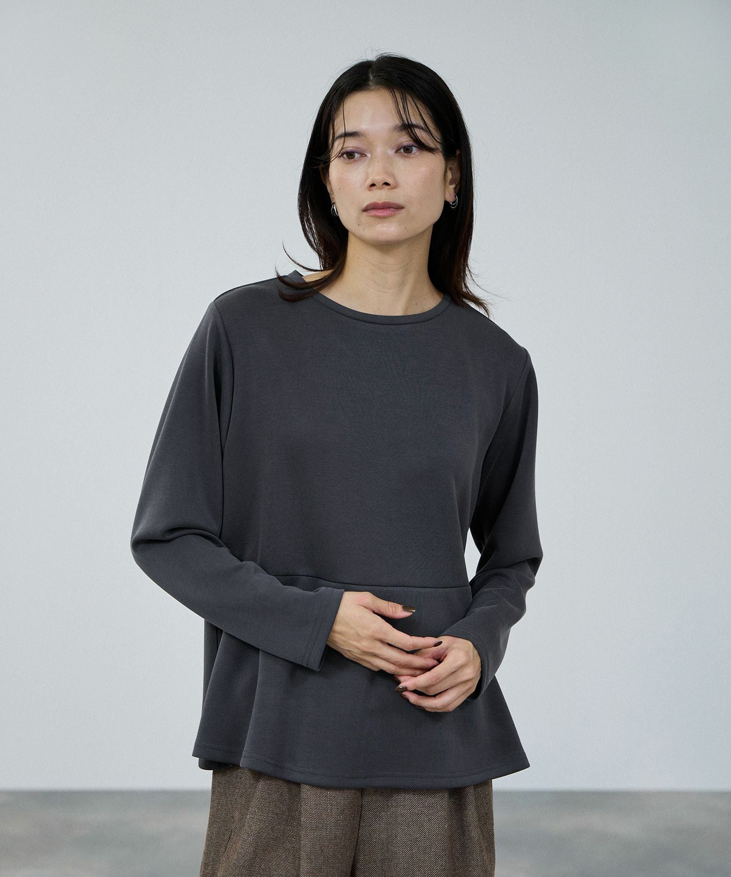 ミリデラール 長袖Tシャツ ロンT ペプラム フレア カットソー 無地 白 黒 シンプル プルオーバー